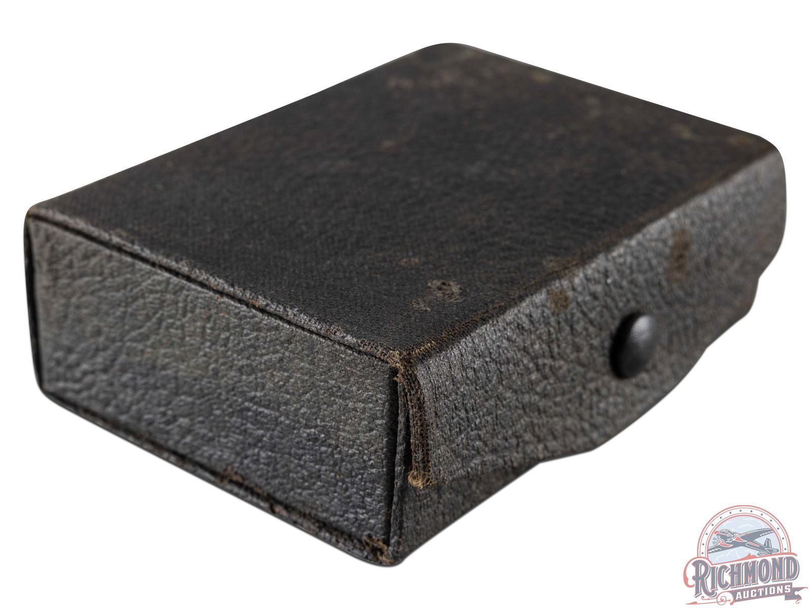 Vintage 1920's United States Cartridge Company shotgun shell salesman sample kit with kit having "Defiance, Climax, Climax Heavies, Ajax Heavy and Ajax Heavy shell sliced lengthwise. Shells are housed in heavy cardboard leather covered case with snap lid. Box has no label.