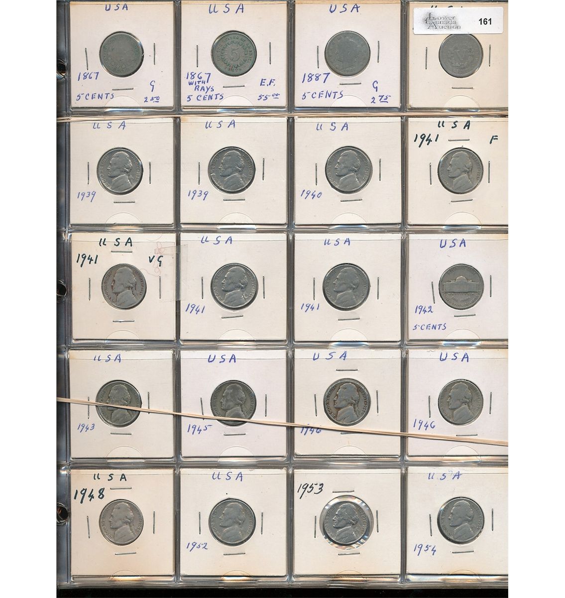 United States Coin Collection; includes 1867 5¢ & Mixture of Ten Cents to Dollars mostly Nickel. Some Silver Ten Cent pieces. 109 coins AG to MS.