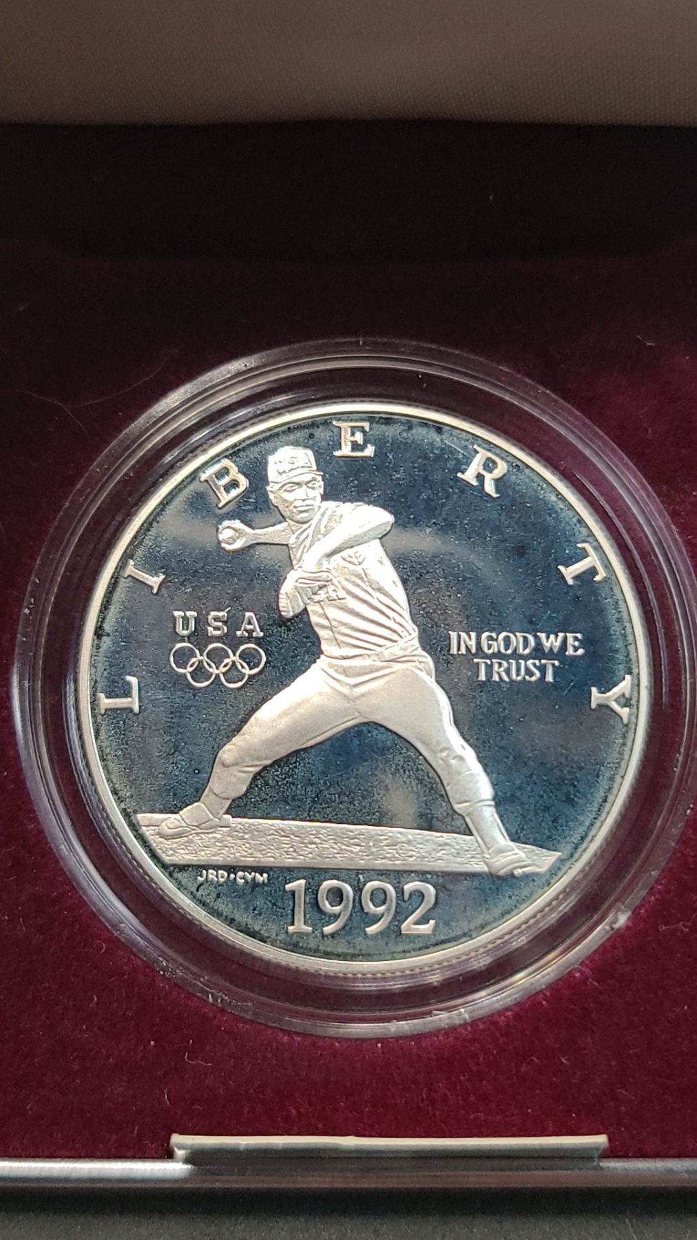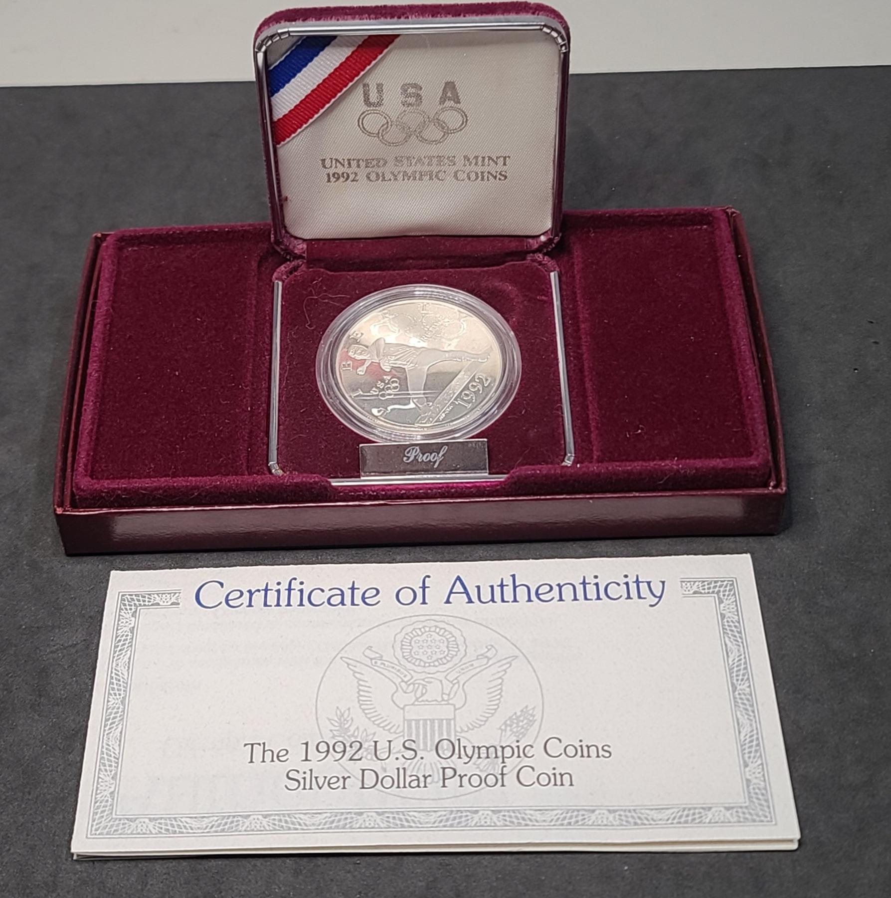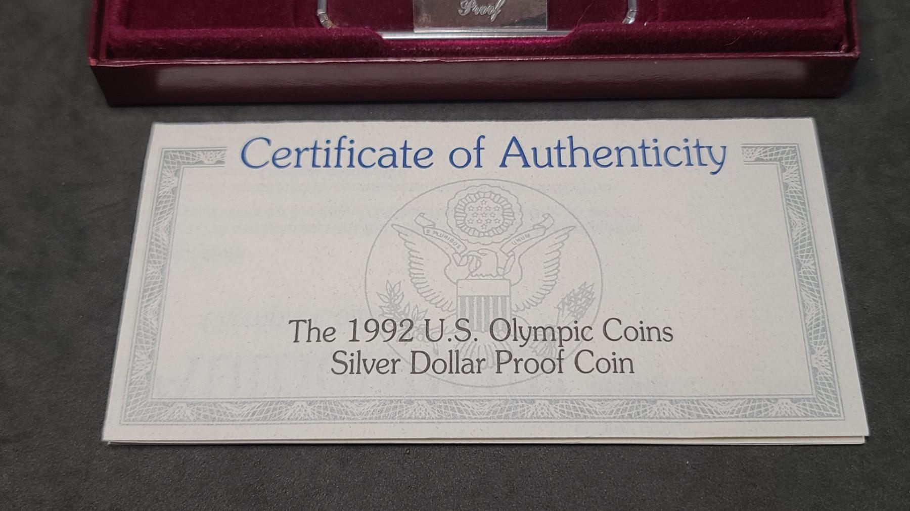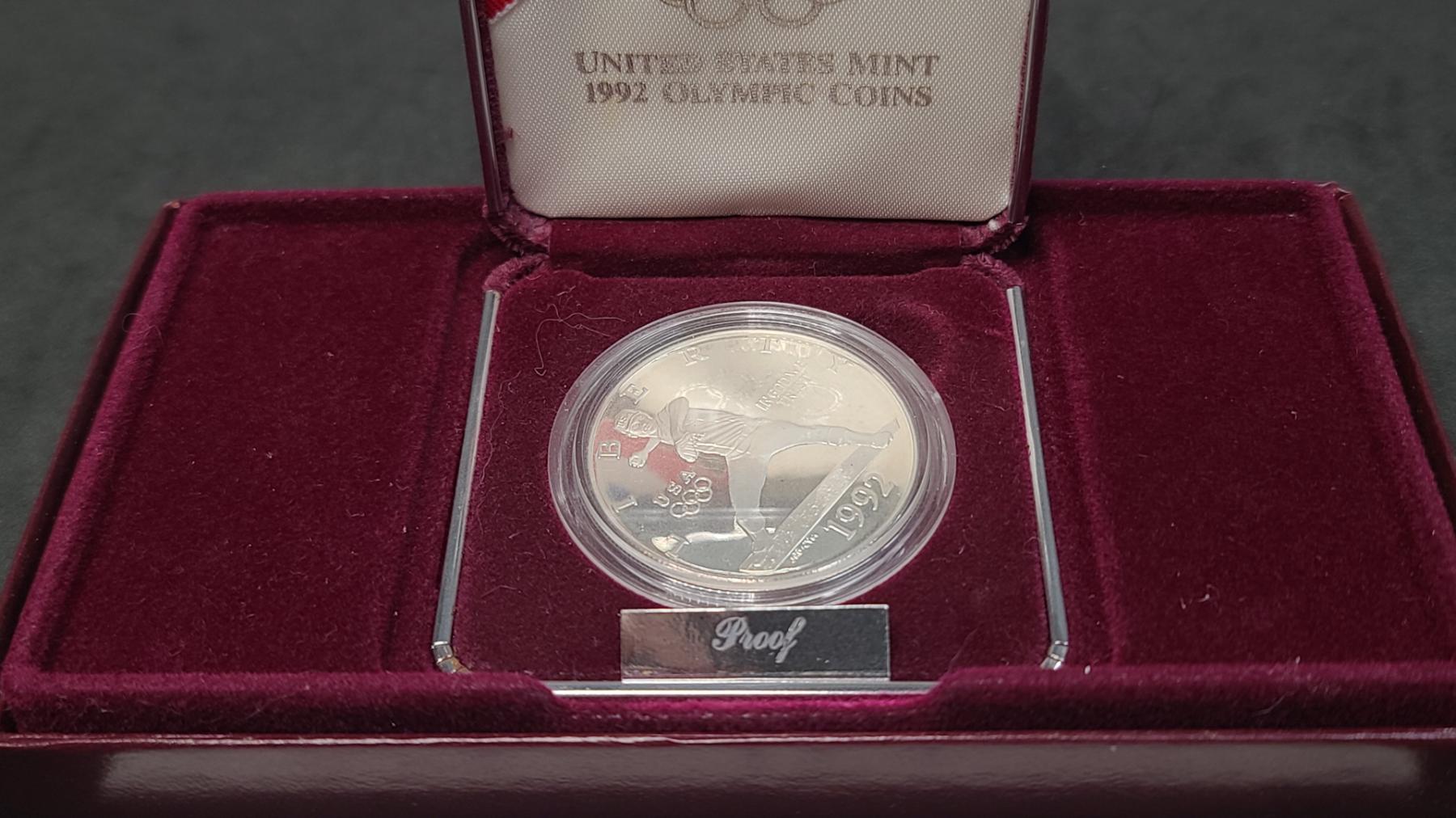 United States Mint 1992-S Olympic Baseball Commemorative Proof 90% Silver Dollar With COA