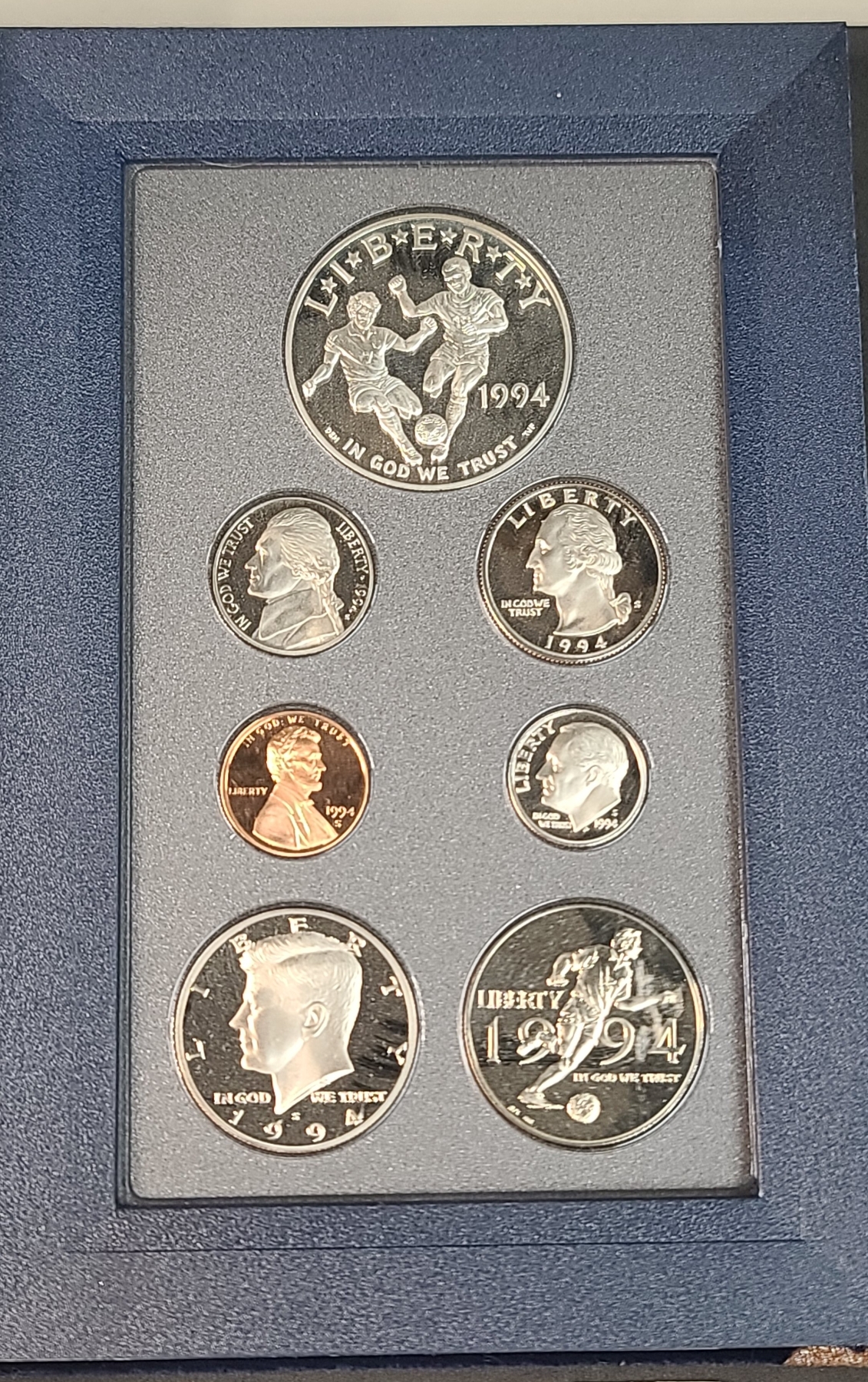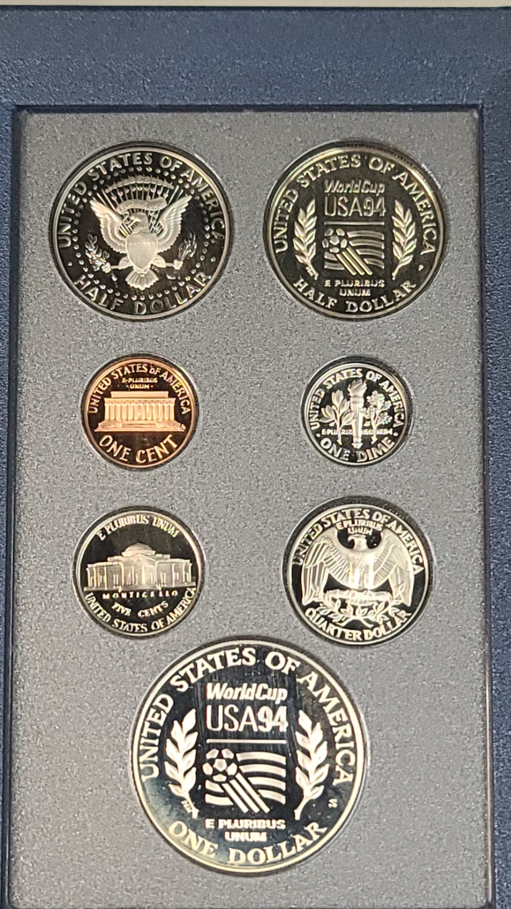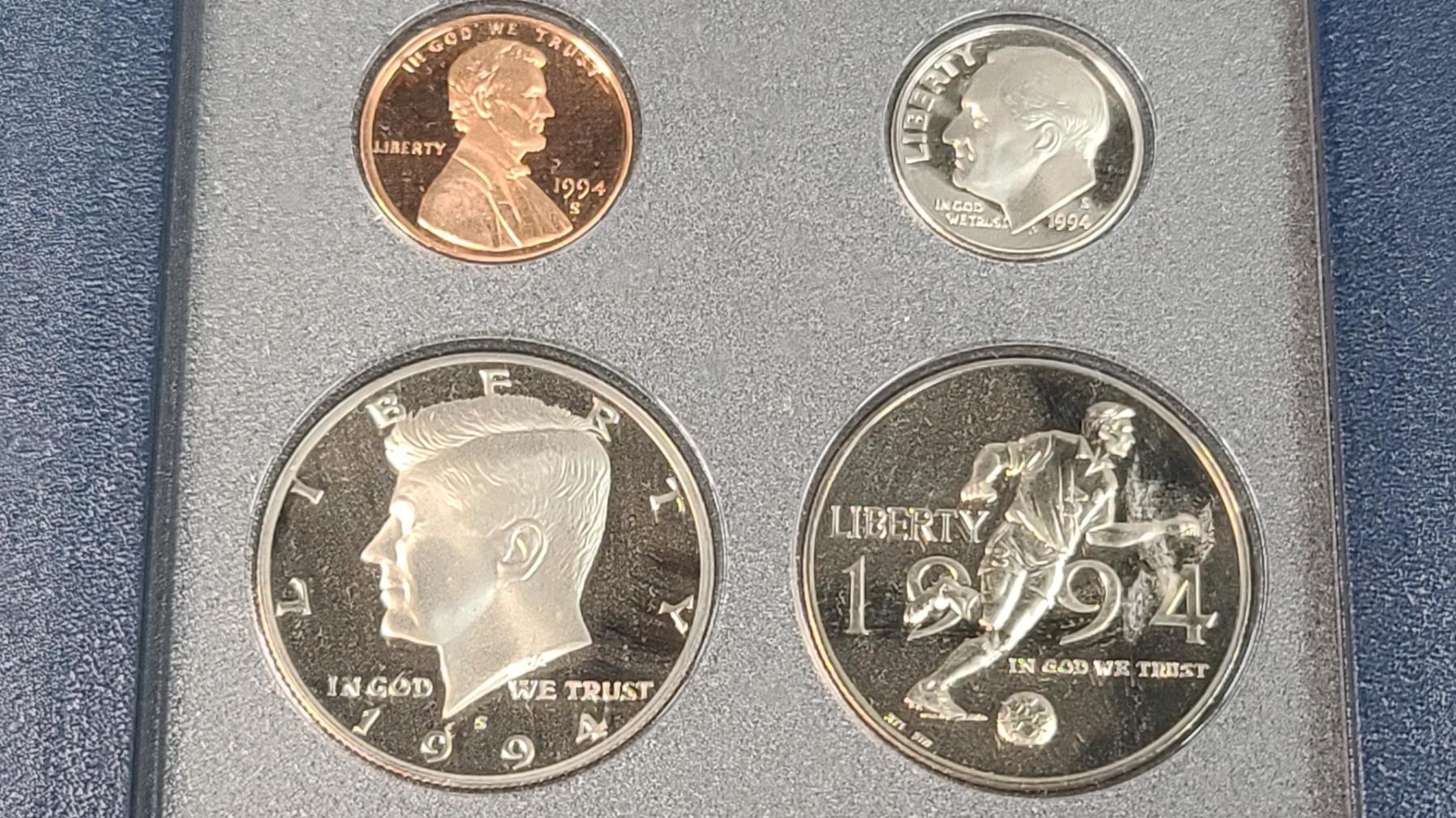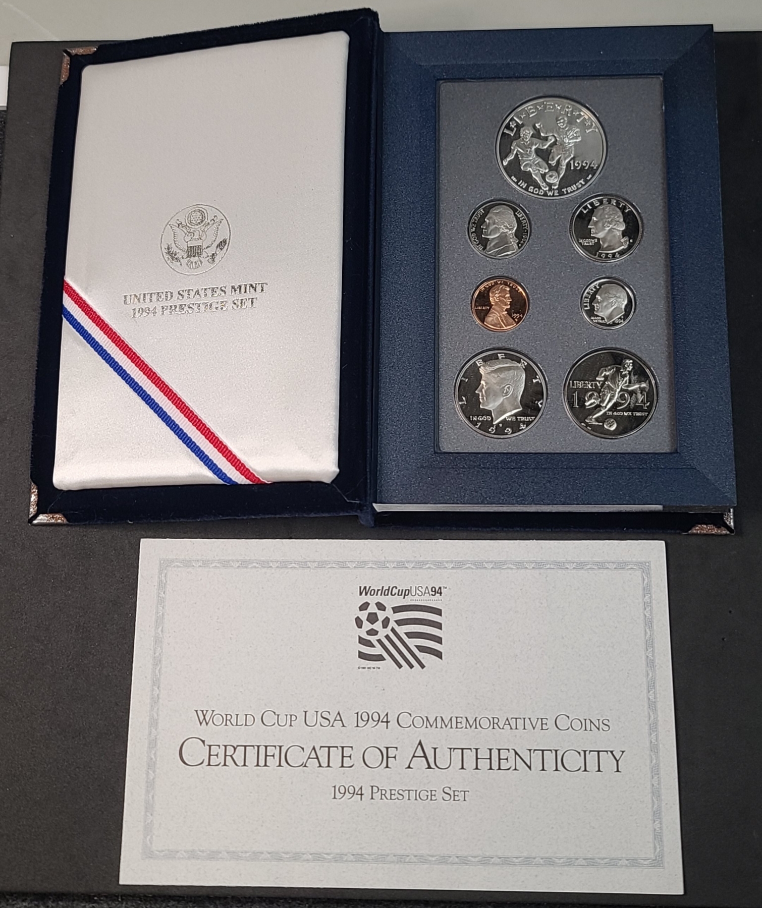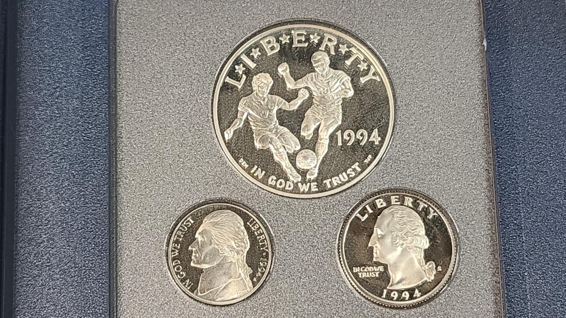 United States Mint 1994 Prestige Coin Set Featuring The World Cup 90% Silver Proof Dollar