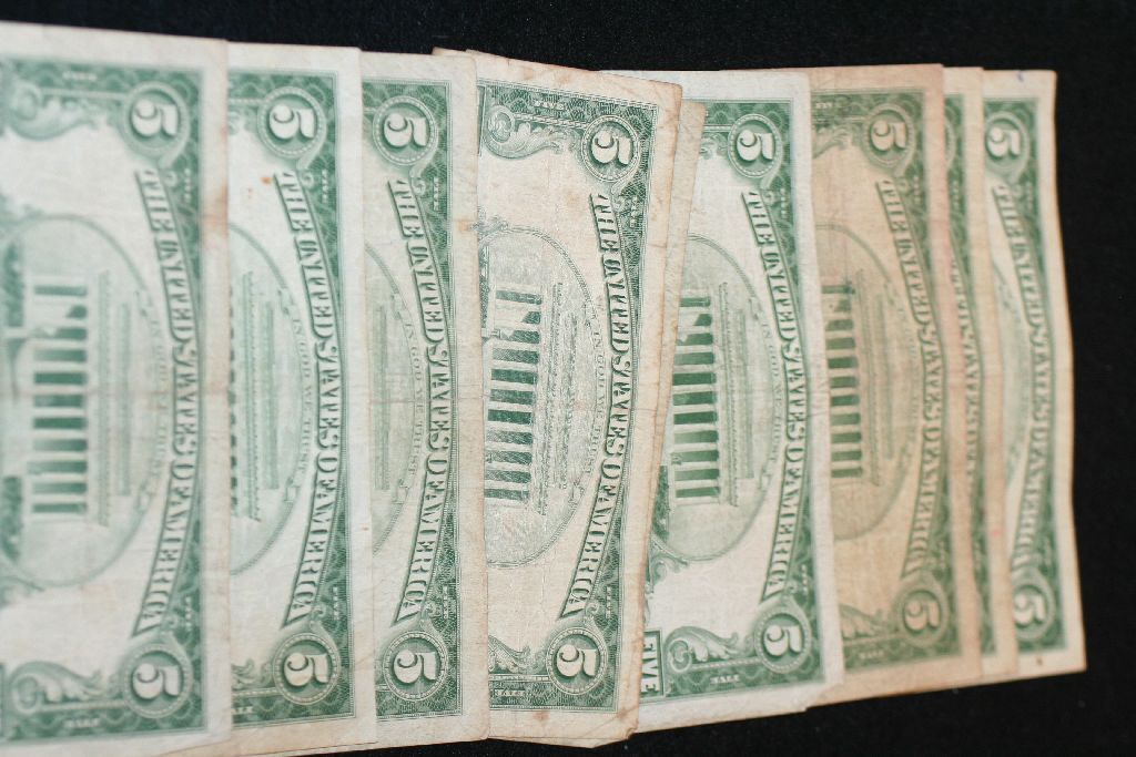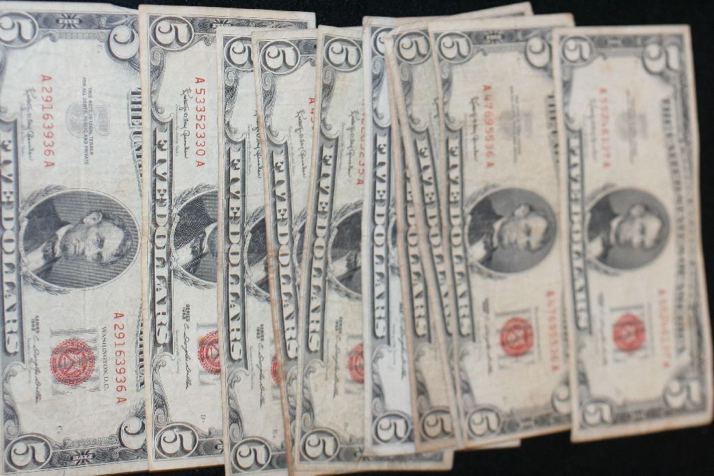 United States Note $5, Red Seal, Various Dates & Conditions, Lot of 10