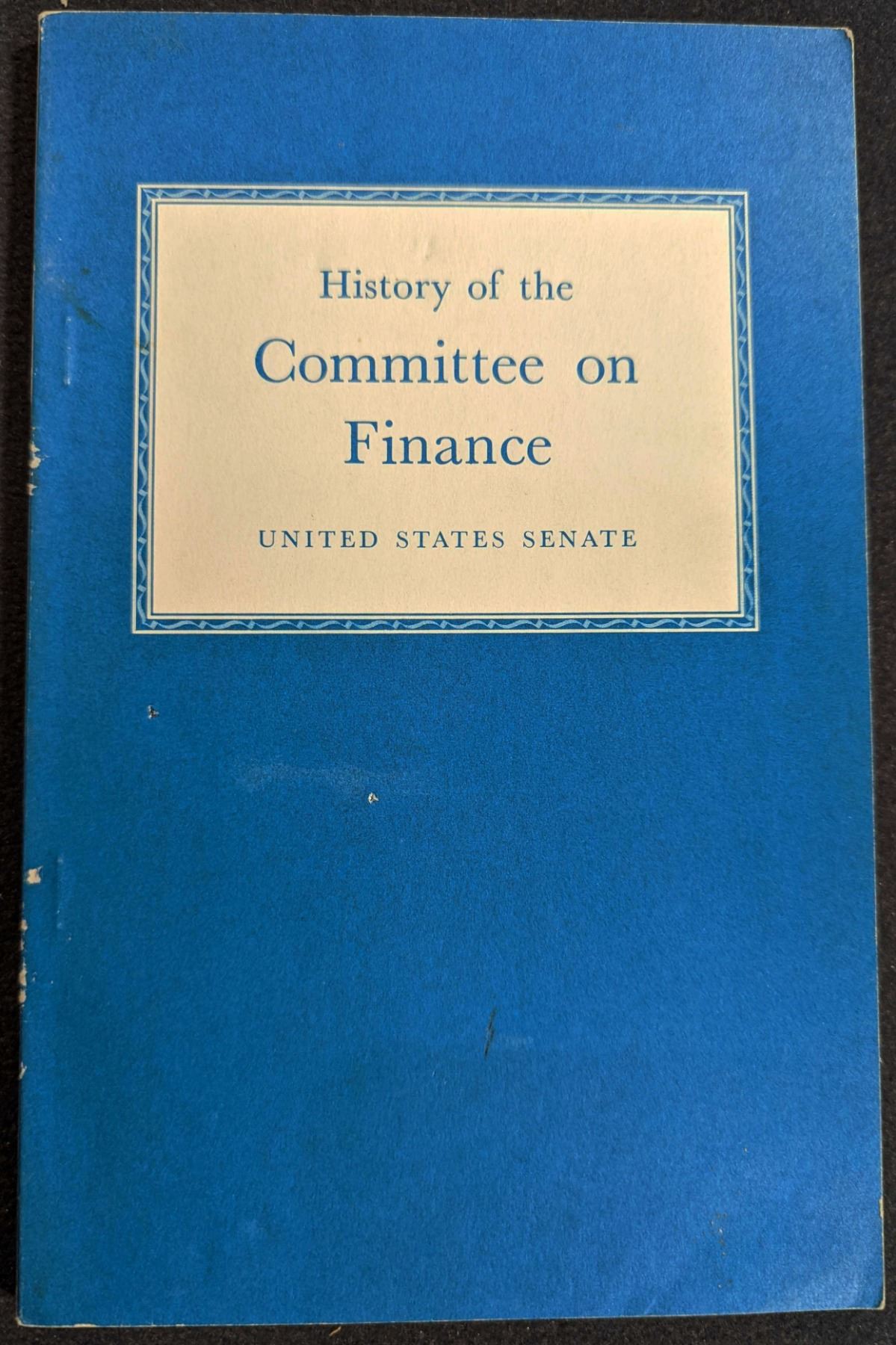 United States Senate Committee on Finance. HISTORY OF THE COMMITTEE ON FINANCE. Washington: Government Printing Office. 1970. 12mo. xii, 123 pages. Washington D.C. original printed card covers. tables. b&w photo illustrations. Fine. Senate Doc. 91-57. This publication presents a brief history of the Committee, and its areas of jurisdiction is intended to acquaint the reader with the involvement of the Committee in the major public issues in which the Finance Committee participates and to give some indication of the Committee's major role in shaping U.S. policy in these areas. Lot weight: 0 lbs 10oz. Subject(s): Financial Services - United States.