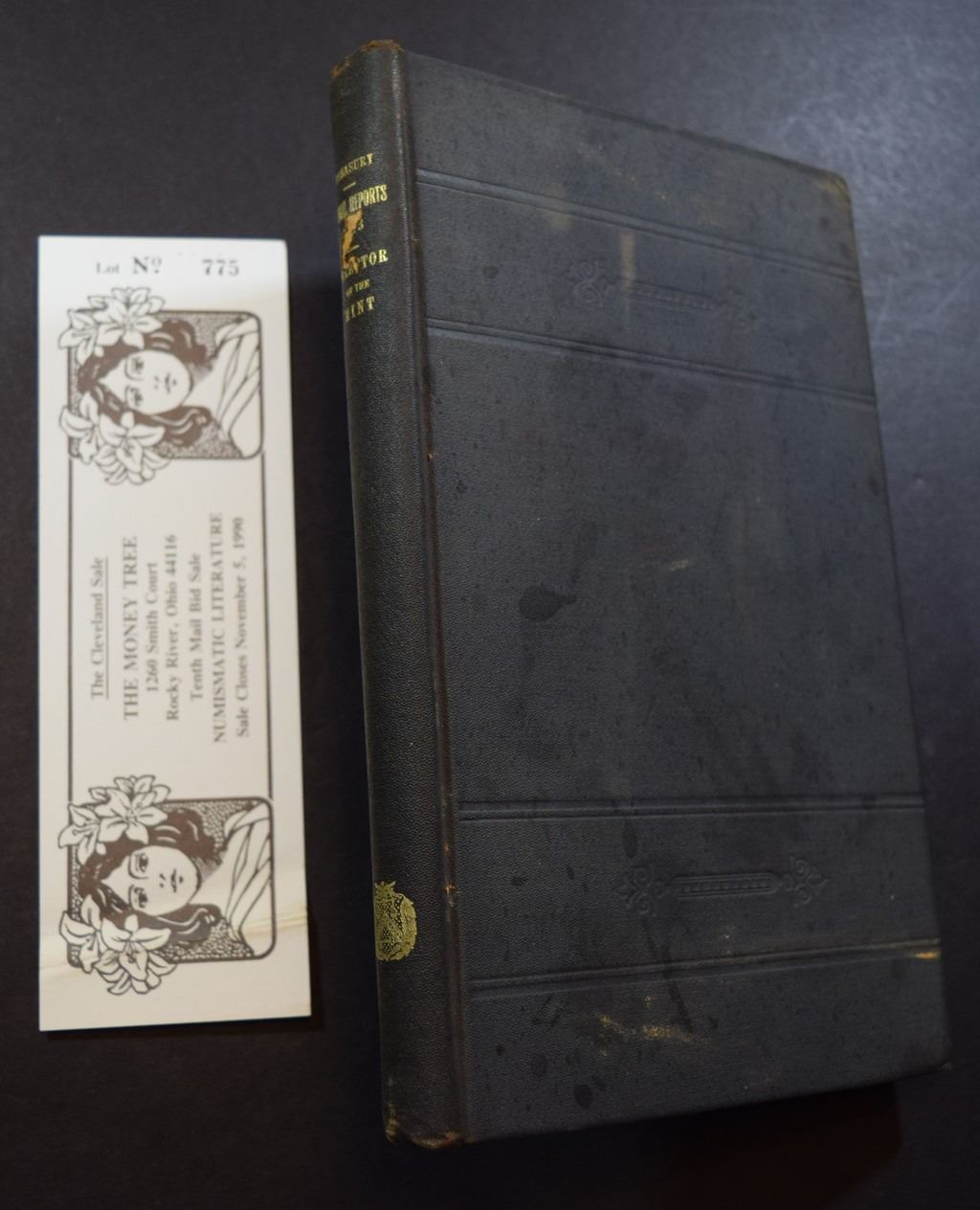 United States Treasury Department. ANNUAL REPORT OF THE DIRECTOR OF THE MINT TO THE SECRETARY OF THE TREASURY FOR THE FISCAL YEAR ENDED JUNE 30, 1903. Washington: Government Printing Office. 1903. 12mo. 293 pages. Original black blind-stamped cloth, gilt. Very Good. Treasury Department, Document No. 2350. Tables. Index. The U.S. Mint Report consists primarily of the Mint Director's annual report to the Secretary of the Treasury, this series contains information often found nowhere else, revealing internal workings of the Mint and copious statistical data. In addition to the annual reports, this series includes other reports as issued, for example, results of assay tests of foreign gold and silver coins. ex Money Tree Sale No. 10 Lot 775. Lot weight: 1 lbs 3oz. Subject(s): Mint Report - United States.
