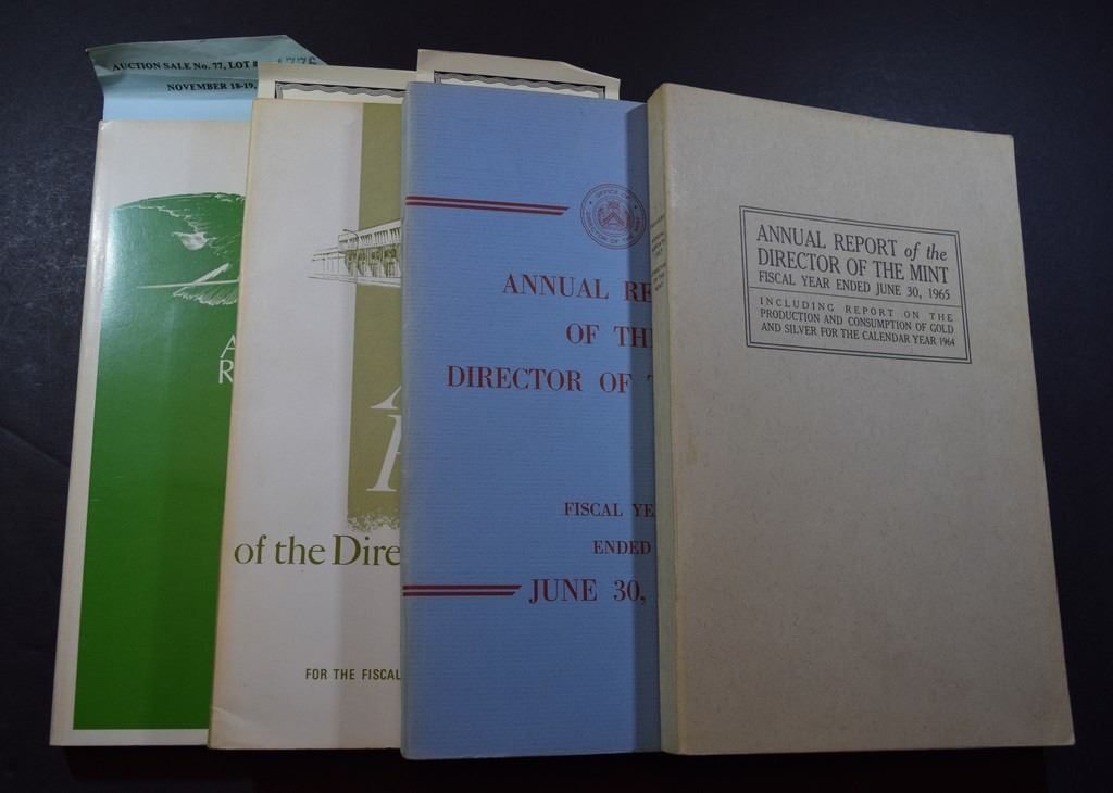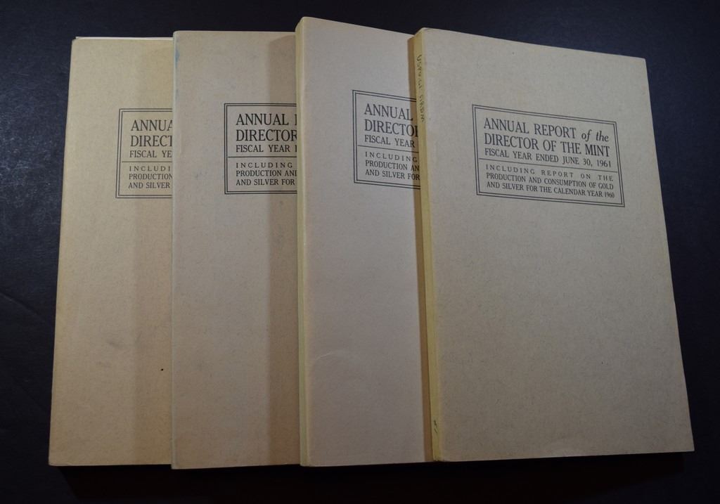 United States Treasury Department, 1960. ANNUAL REPORT OF THE DIRECTOR OF THE MINT TO THE SECRETARY OF THE TREASURY, 1961 TO 1969. Washington: Government Printing Office. This group lot contains the following books: