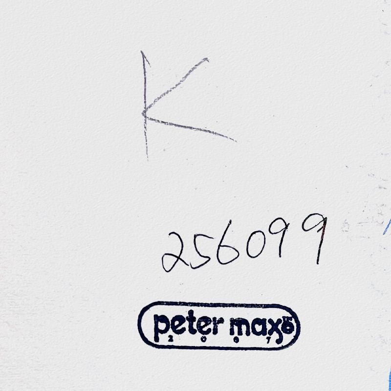 "United We Stand" is a one-of-a-kind mixed media on paper, hand signed by Peter Max. The piece comes custom framed with a backside cutout to display Peter Max Studio registration number 256099 certifying authenticity. Measures approximately 35" x 29" (frame), 24" x 18" (image). This item requires special handling and may have a longer than usual turnaround.