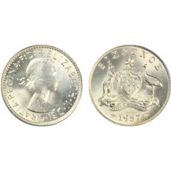 1957 Australian QEII Sixpence PCGS MS 64