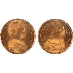 1966 (P) Australian QEII Two Cent Coin - PCGS MS 66 RD