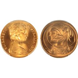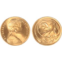 1970 Australian QEII Two Cent Coin - PCGS MS 66 RD