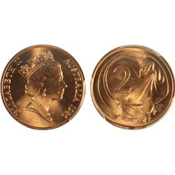 1986 Australian QEII Two Cent Coin - PCGS MS 67 RD