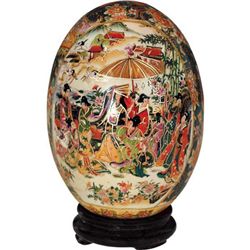 This delightful porcelain accessory is richly adorned in fine details. Painted Geishas and other traditional elements highlighted in gold. Dimensions: