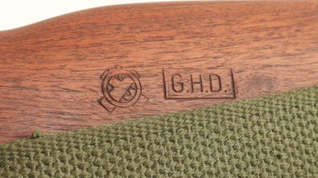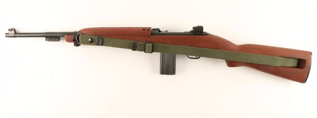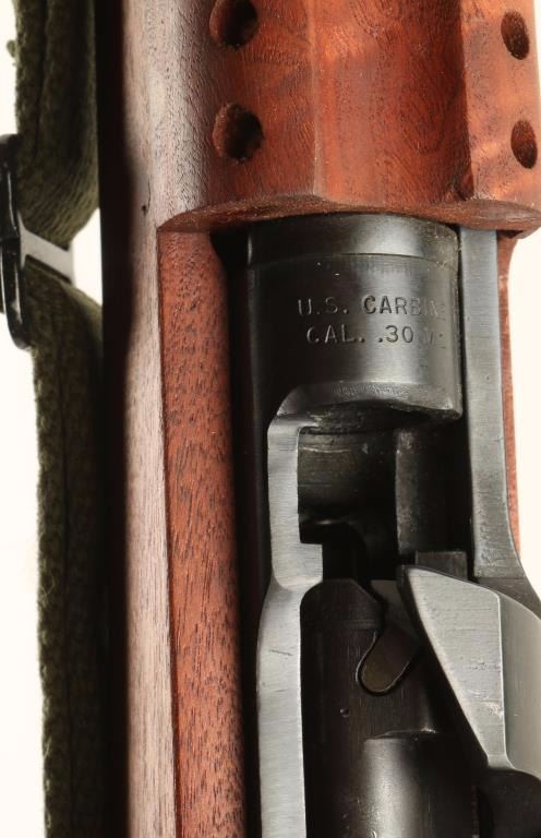 Post WWII commercially produced M1 Carbine rifle chambered in .30 Carbine. Earlier production GI type rifle, circa 1960's. Features a blued finish, 18.4" unmarked barrel, winged front sight, adjustable rear aperture sight, wide barrel band, greed canvas swivel, high-wood hand guard with wide groove, oval cut oiler slot, rotary style safety, 15 round magazine, smooth trigger, round bolt, and wood pistol grip stock with circle "P" cartouche. Rifle shows 90% finish intact with the most wear on the bolt. Action is smooth, micro groove like bore is excellent, and stocks are fine. Condition is excellent. ***Modern Firearm***