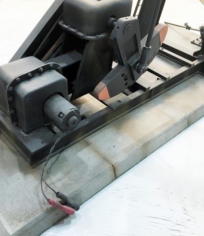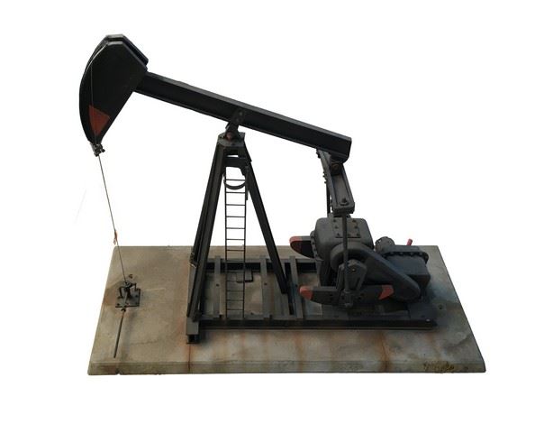 For scenes flying through an oil field in Disney's Universe of Energy ride, this miniature oil derrick was built and photographed on a miniature landscape. The landscape was placed outside on location at Vasquez Rocks in California and combined the foreground miniature with the background mountains to form the shot using a technique known as Forced Perspective. Made from MDF wood, styrene plastic and cast resin, these derricks had internally mounted motors to allow pumping action during the high-speed photography. 24" long x 19" tall. 1:16 ratio. This incredible, handmade miniature is from the celebrated collection of Academy Award winning New Deal Studios. New Deal Studios is a 21st Century Media Studio, unlike any in the world. A full-service film production and visual effects studio, with over 20 years of iconic imagery, New Deal Studios develops, designs, prototypes, and creates all types of high caliber media projects. Founded in 1995 by Matthew Gratzner, Ian Hunter and Shannon Blake Gans, this artist owned and operated independent studio, born in the heyday of visual effects, has truly evolved into the technology driven studio for the future, consistently delivering the perfect marriage of artistry and technology. Award winning credits by New Deal Studios include high-profile projects such as Dark Knight Rises, Hugo, The Avengers, Oz the Great and Powerful, Iron Man, The Dark Knight, Watchmen, I am Legend, Night at the Museum, Whiteout, 2012, Alice in Wonderland, Inception, Battleship and Interstellar.
