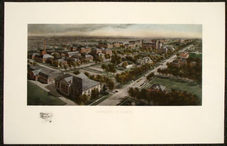 Here is a handsome print of an early 20th century portrait of the University of Illinois campus. * * Artist: Richard RuminellSignature: Printed, lower left * Title: "University of Illinois" Medium: EtchingRemarque: lower left marginCopyright: 1911Sheet size: 22 x 34 1/2 inches Condition: Very good