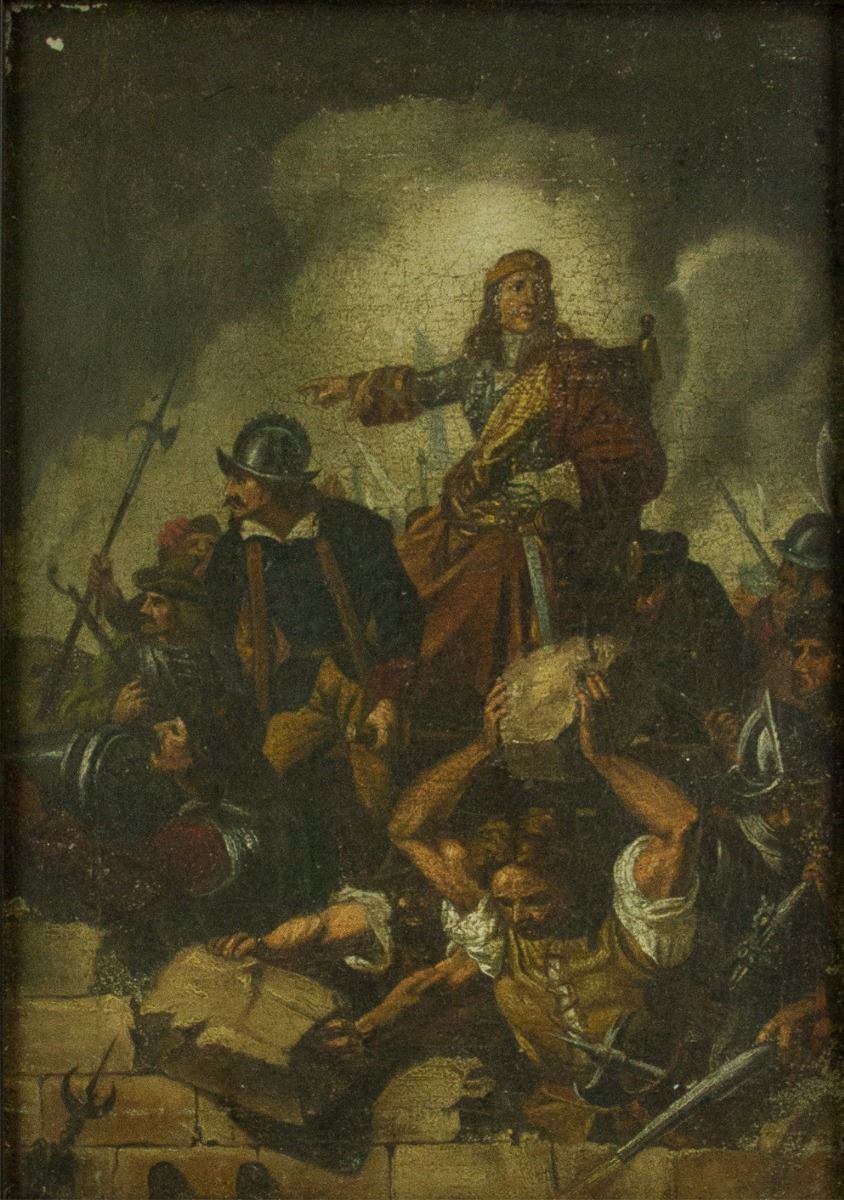 Uprising figures; oil on canvas; framed; 18th century European painting by unknown artist; signed; 23.5 cm x 16.3 cm