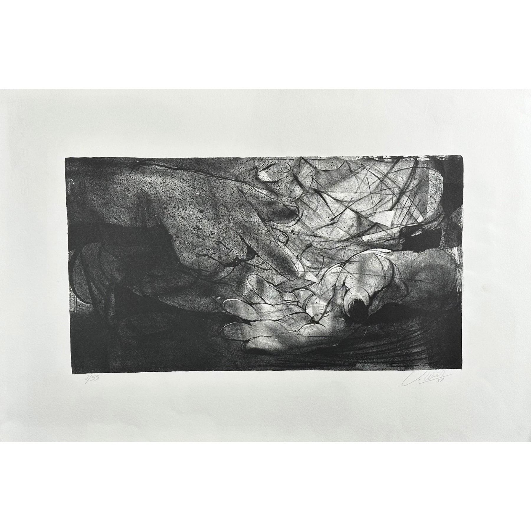 Lithograph titled Hands. Signed lower right numbered .8/55 Sight size 15" x 30"