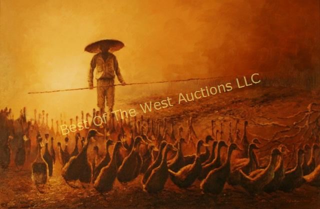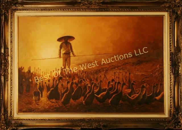 "Goose Herder", 24" x 36", signed lower right, signature illegible, nice frame, -562092-F