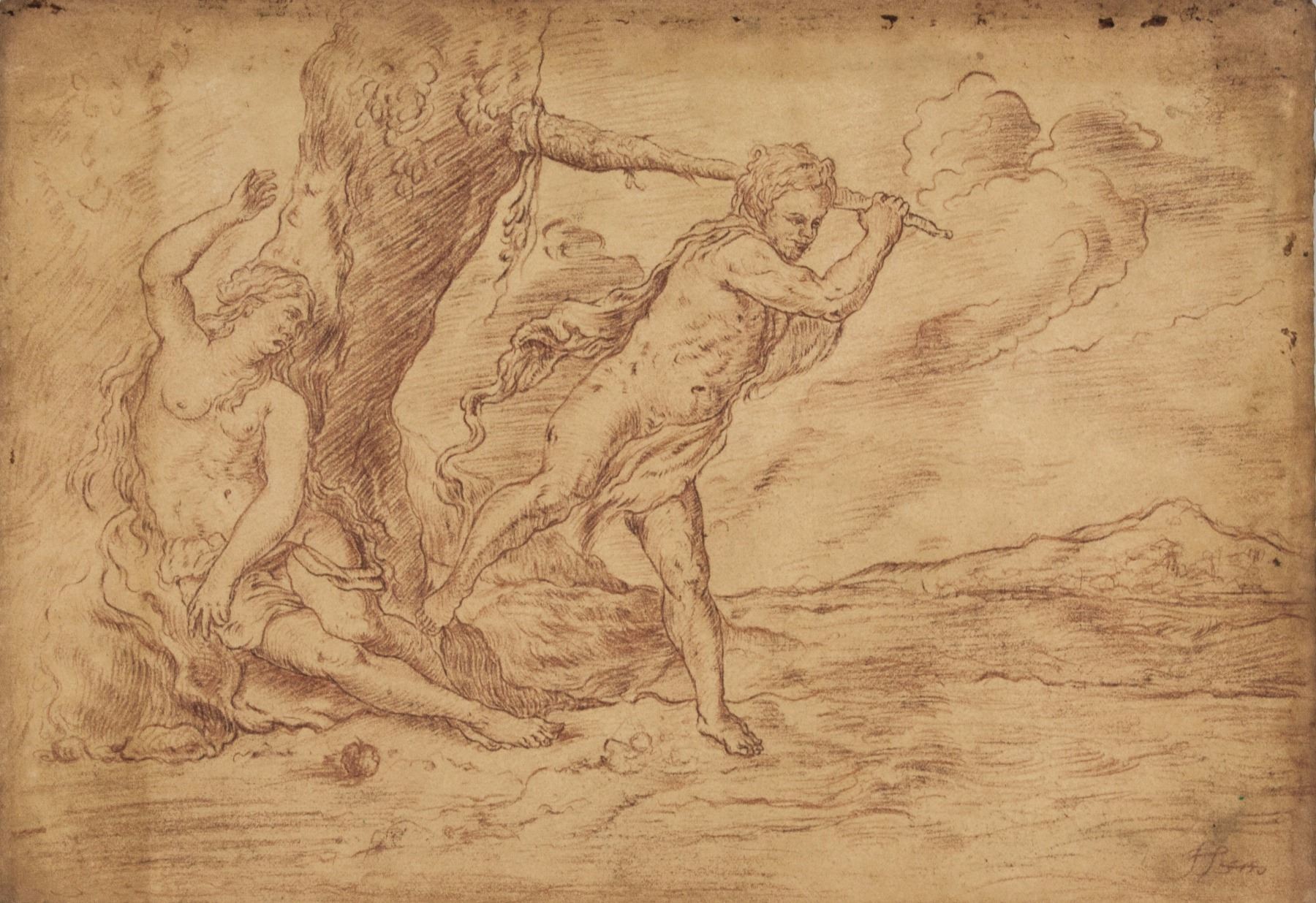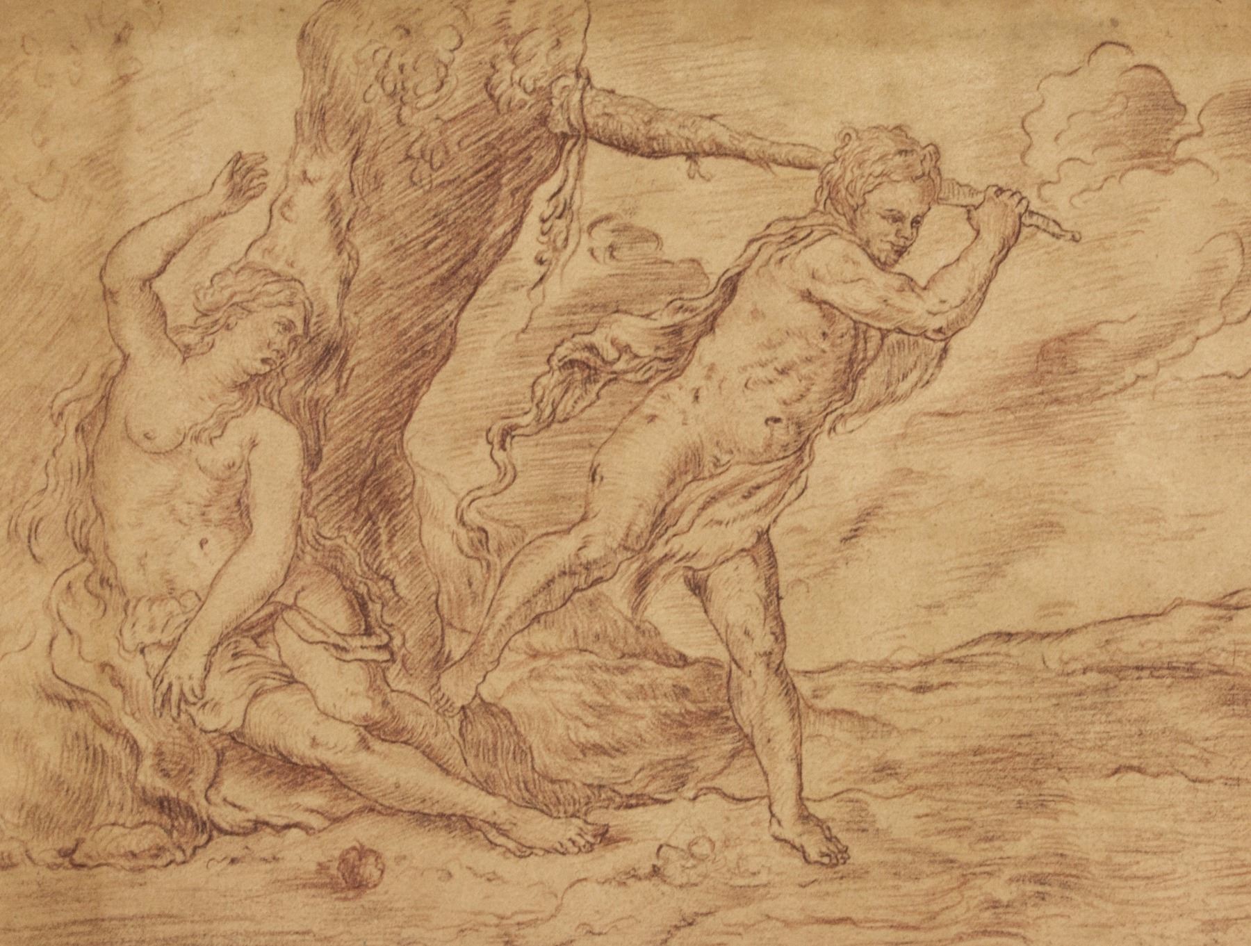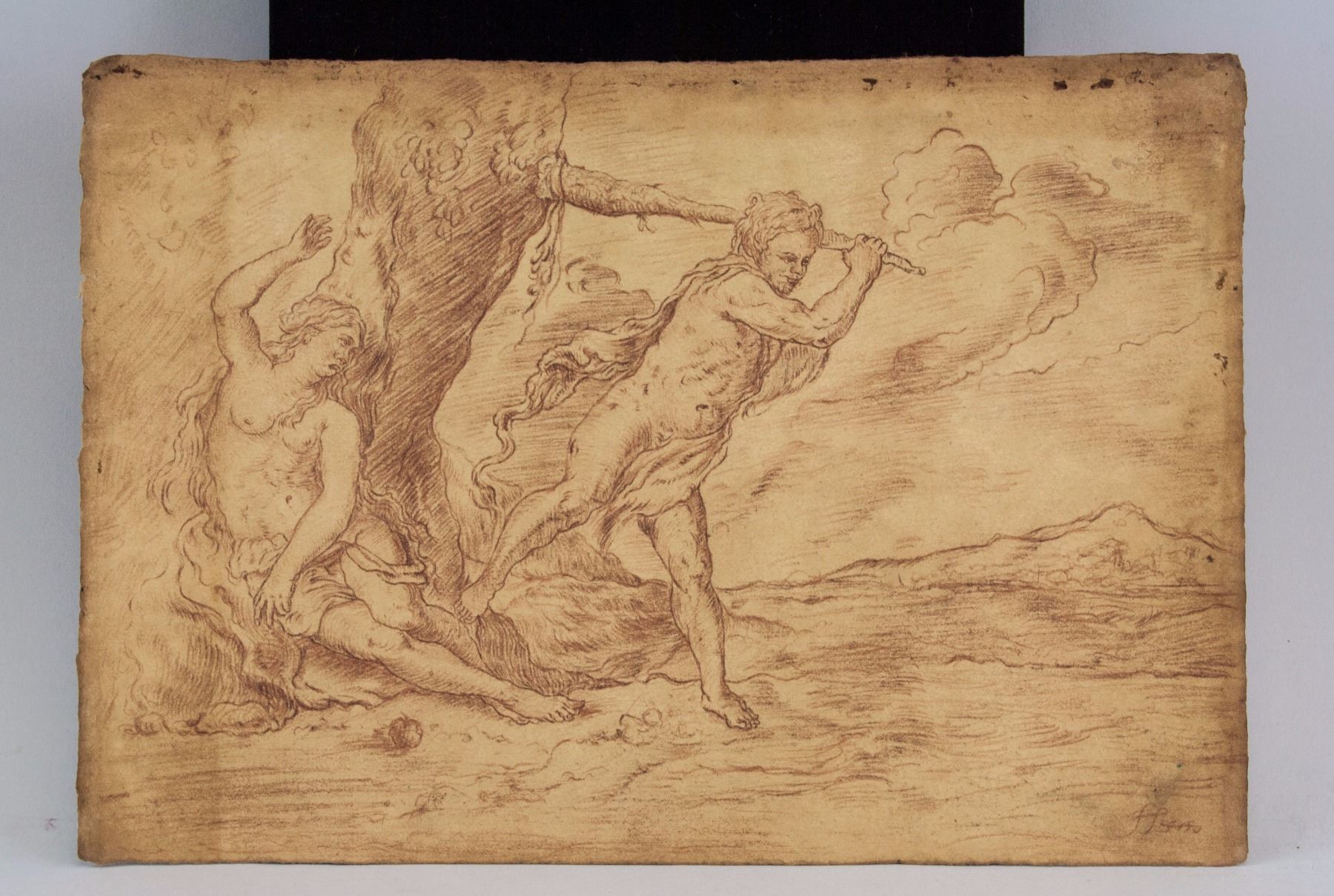 Drawing of Adam and Eve; pencil on paper; signed by unknown artist on right lower corner; 8.5 inch x 11.5 inch
