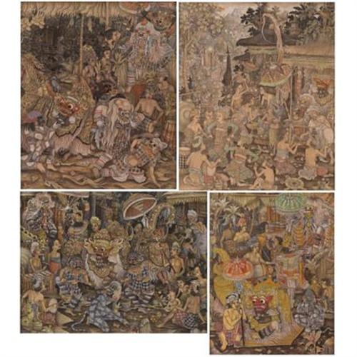 <B>Unknown Balinese Artist</B></I><BR>Four untitled paintings, framed<BR>22-1/2 x 20-1/2; 17-3/4 x 21-1/4; 17 x 19; and 24-1/4 x 20 inches <BR><BR><b>Shipping:</b> Requires 3rd Party Shipping (<a target="_blank" href="http://www.heritageauctions.com/common/shipping.php">view shipping information</a>)