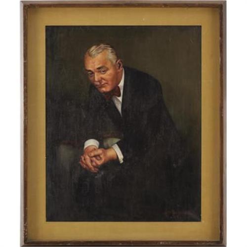 <B>Unknown CENSORED Club Member Portrait.</B></I> A 16" x 20" oil portrait of an unknown Beverly Hills CENSORED Club member circa 1947 by Edith Tuckman, from the walls of the Club. The portrait has been matted and framed to an overall size of 21" x 25" and is in Very Fine to Excellent condition with some mild wear to the frame. <I>From the Beverly Hills CENSORED Club Celebrity Roast Archive.</B></I><BR><BR><b>Shipping:</b> Framed - without Glass, Medium (<a target="_blank" href="http://www.heritageauctions.com/common/shipping.php">view shipping information</a>)