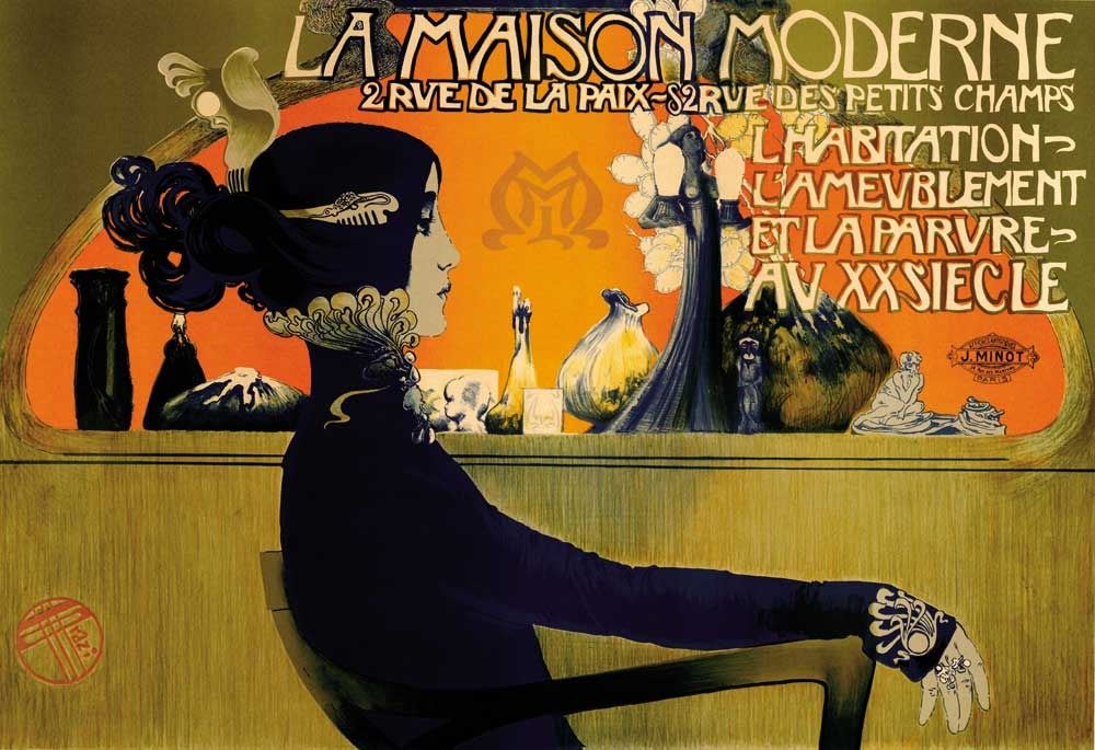 Artist: Unknown Title: La Maison Moderne Medium: Fine Art Reproduction Giclee on Canvas Image Size: Approximately 13.75 inches x 20 inches Framed: Unframed on Unstretched Canvas