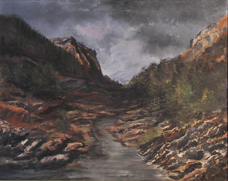 , Unknown , Oil On Canvas , Canyon Landscape , 22" x 28" , Unsigned , (6288)