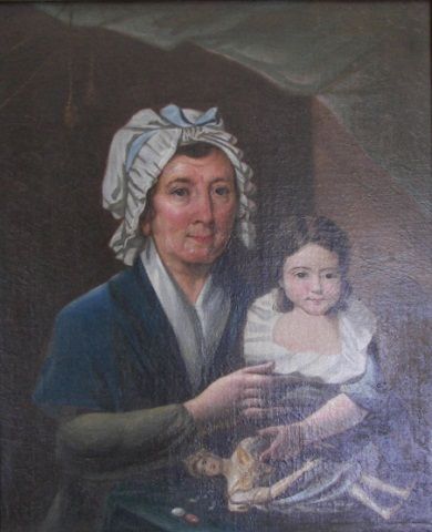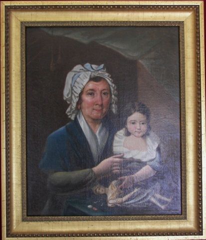 Unknown Oil on canvas , Unknown , Oil on canvas , Mother and Child with Doll , 21 1/2" x 17 1/2" , Unsigned , 19th Century, English Frame , (5638) Relined