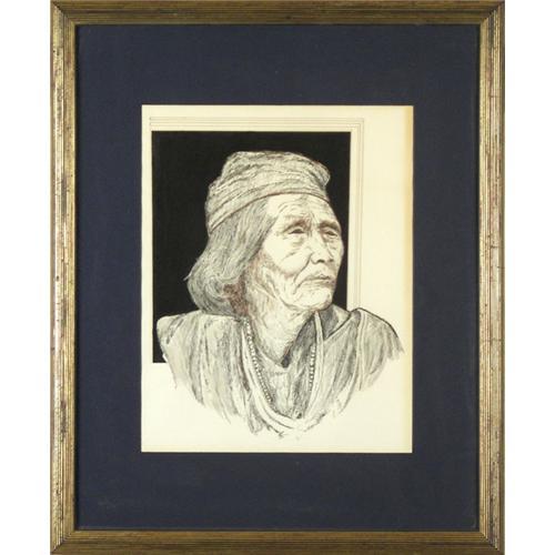 Unknown, Pen & Ink, Indian Portrait, sight size 13 1/4" x 18 3/8", no visible signature