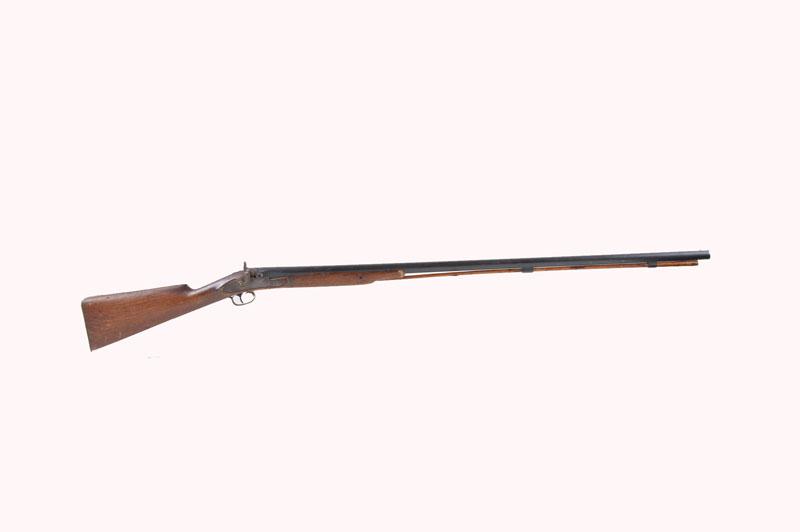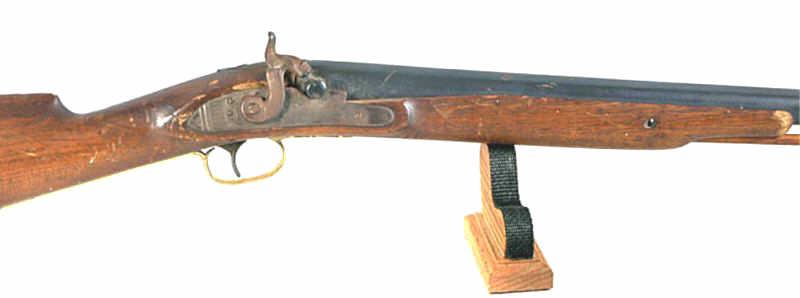 Unknown Percussion Approx 12 ga SN:NVSN Percussion fowler, 39" barrel, blued finish, wood short stock with what looks like original ramrod. Wood is cracked and pieces missing, but in overall average condition. Barrel is still mostly blue with some areasPercussion fowler, 39" barrel, blued finish, wood short stock with what looks like original ramrod. Wood is cracked and pieces missing, but in overall average condition. Barrel is still mostly blue with some areas starting to turn plum.