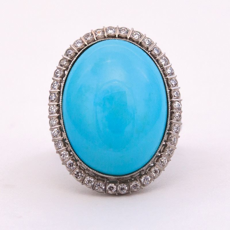 Title: Persian Turquoise and Diamond Ring