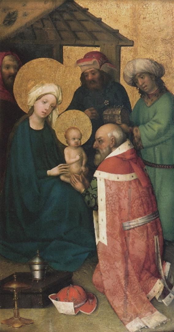 Artist: Unknown - Title: The Three Magi Adoring Jesus Christ - Medium: Fine Art Giclee on Canvas - Image Size: Approximately 32 inches x 17 inches - Unframed on Unstretched Canva