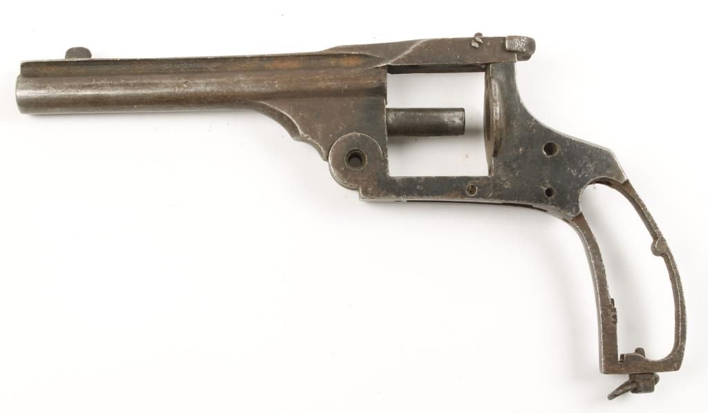 Large frame (stripped) and barrel for an unmarked revolver. No internal parts. *Antique Firearm*