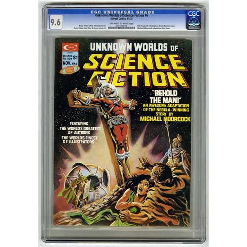 <B>Unknown Worlds of Science Fiction #6 (Marvel, 1975) CGC NM+ 9.6 Off-white to white pages.</B></I> Frank Brunner cover art. Pat Broderick frontispiece. Michael Moorcock adaptation. Gene Colan, Alex Nino, and Bruce Jones interior art. Last issue. Overstreet 2006 NM- 9.2 value = $18. CGC census 2/07: 1 in 9.6, none higher.<BR><BR><b>Shipping:</b> Comics - Slabbed (certified) (<a target="_blank" href="http://www.heritageauctions.com/common/shipping.php">view shipping information</a>)