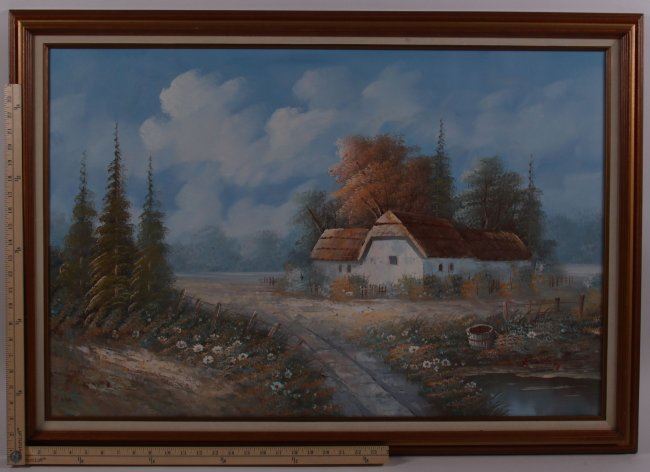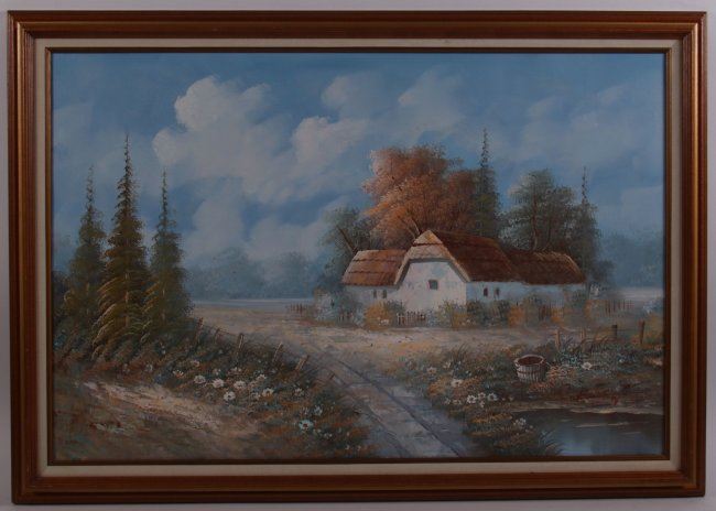 Unknown artist, oilk on canvas of a farm scene. (Size: