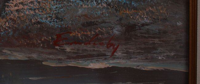 Unknown artist, oilk on canvas of a farm scene. (Size: See second photo for measurement.) Photos are part of the description representing the condition report. Pangaea Auctions urges Bidder's to view all attached photos.