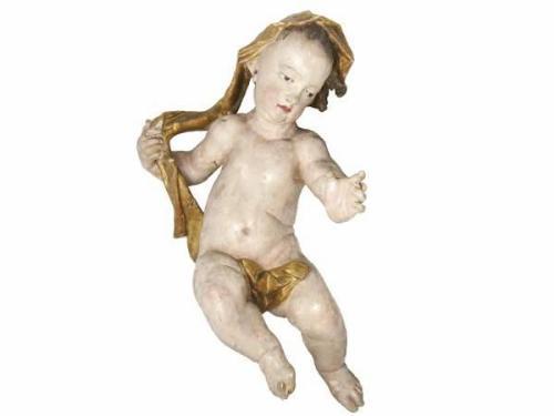 Carved, Painted and gilt wood. Incomplete and damaged. Size: 50 cm