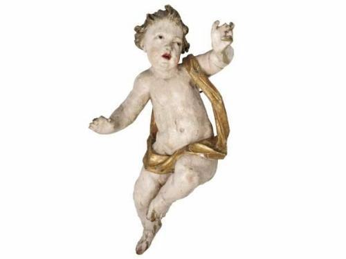 Carved, Painted and gilt wood. Incomplete, damaged. Size: 56 cm