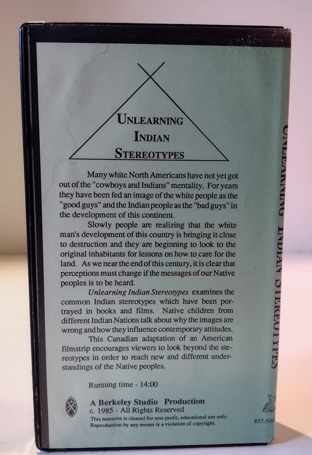 “Unlearning Indian Stereotypes,” VHS tape. Running time is 14 minutes, produced by A Berkley Studio,