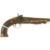 Unmarked 19th C. percussion pistol with 7" barrel, approx. 60 cal. fitted with finely checkered walnut stock and brass fittings. Non functioning action, NO FFL required.