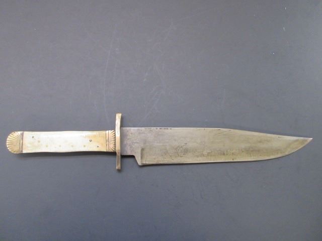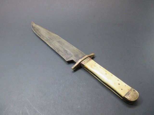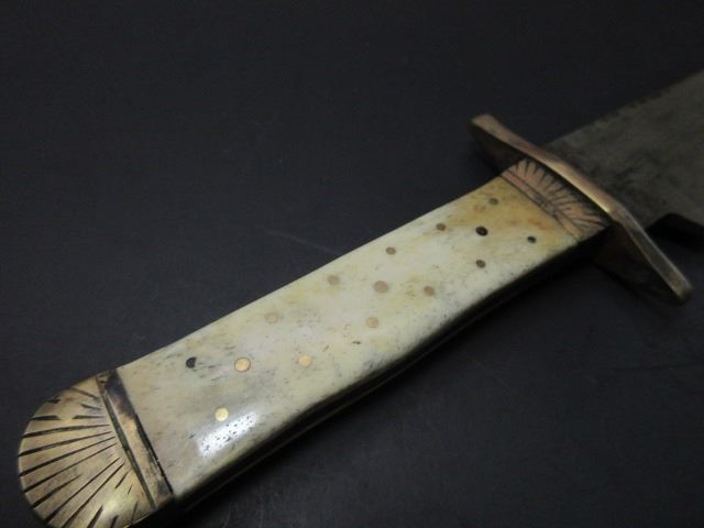Unmarked Bowie Knife- Inlaid Copper on 5" Ivory Handle- 10" Blade