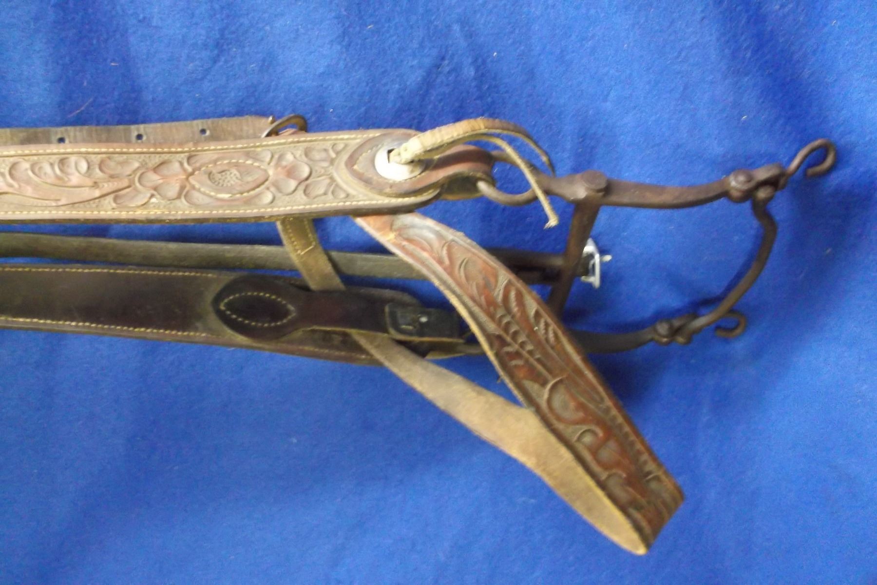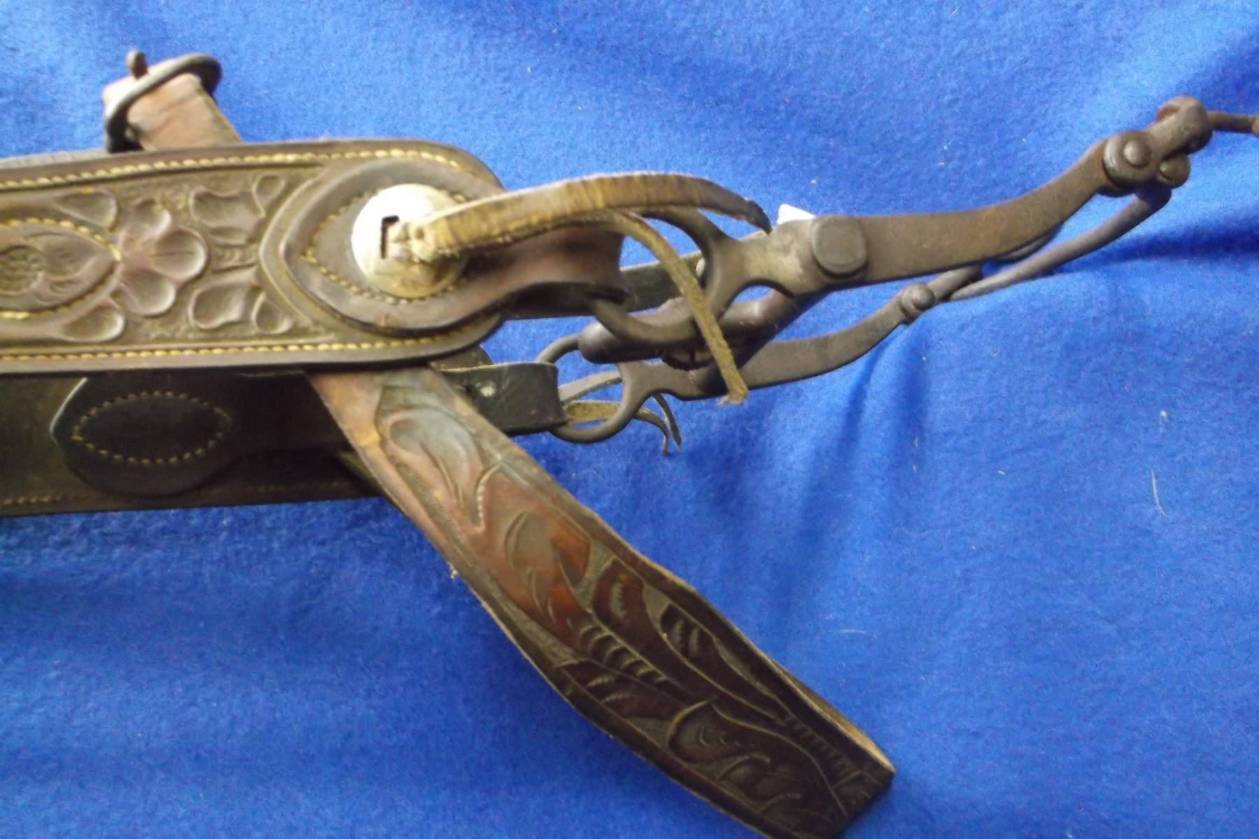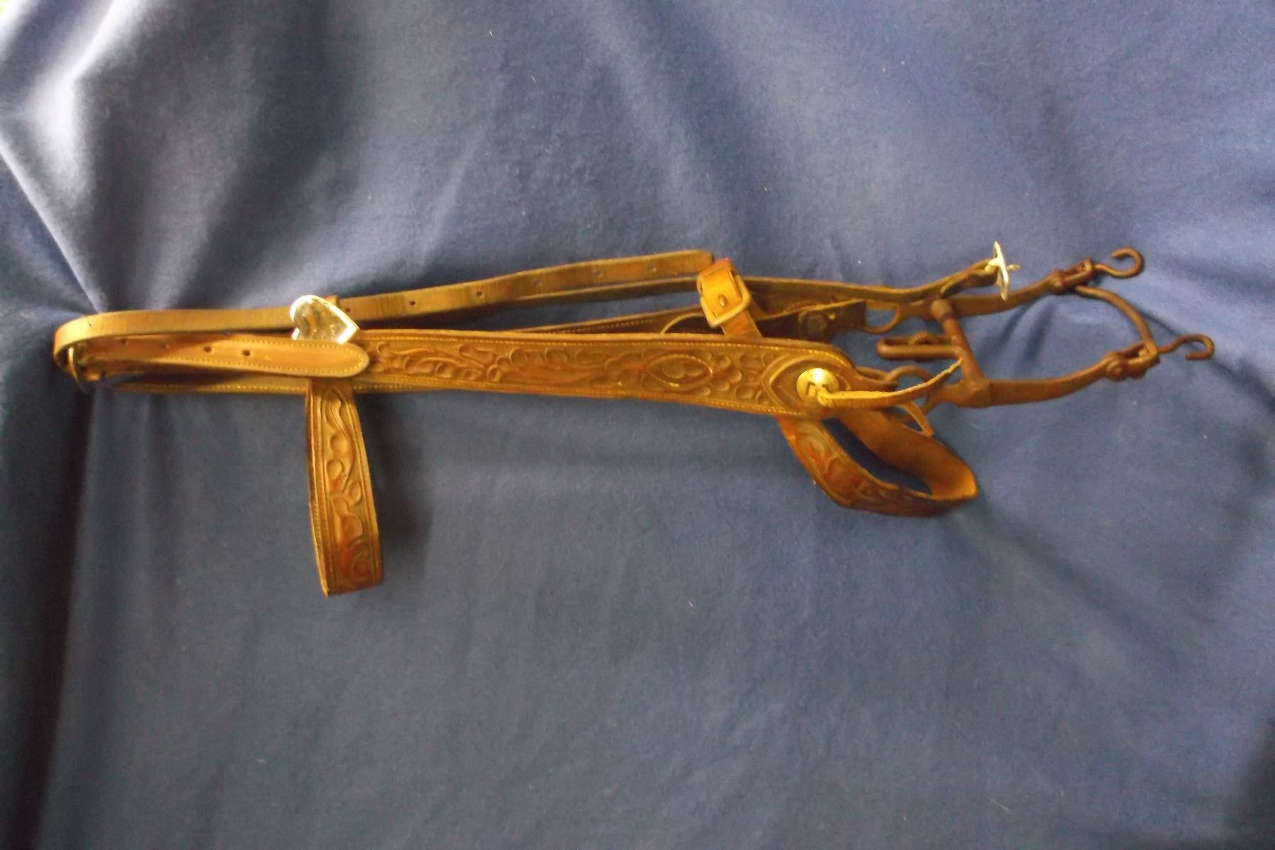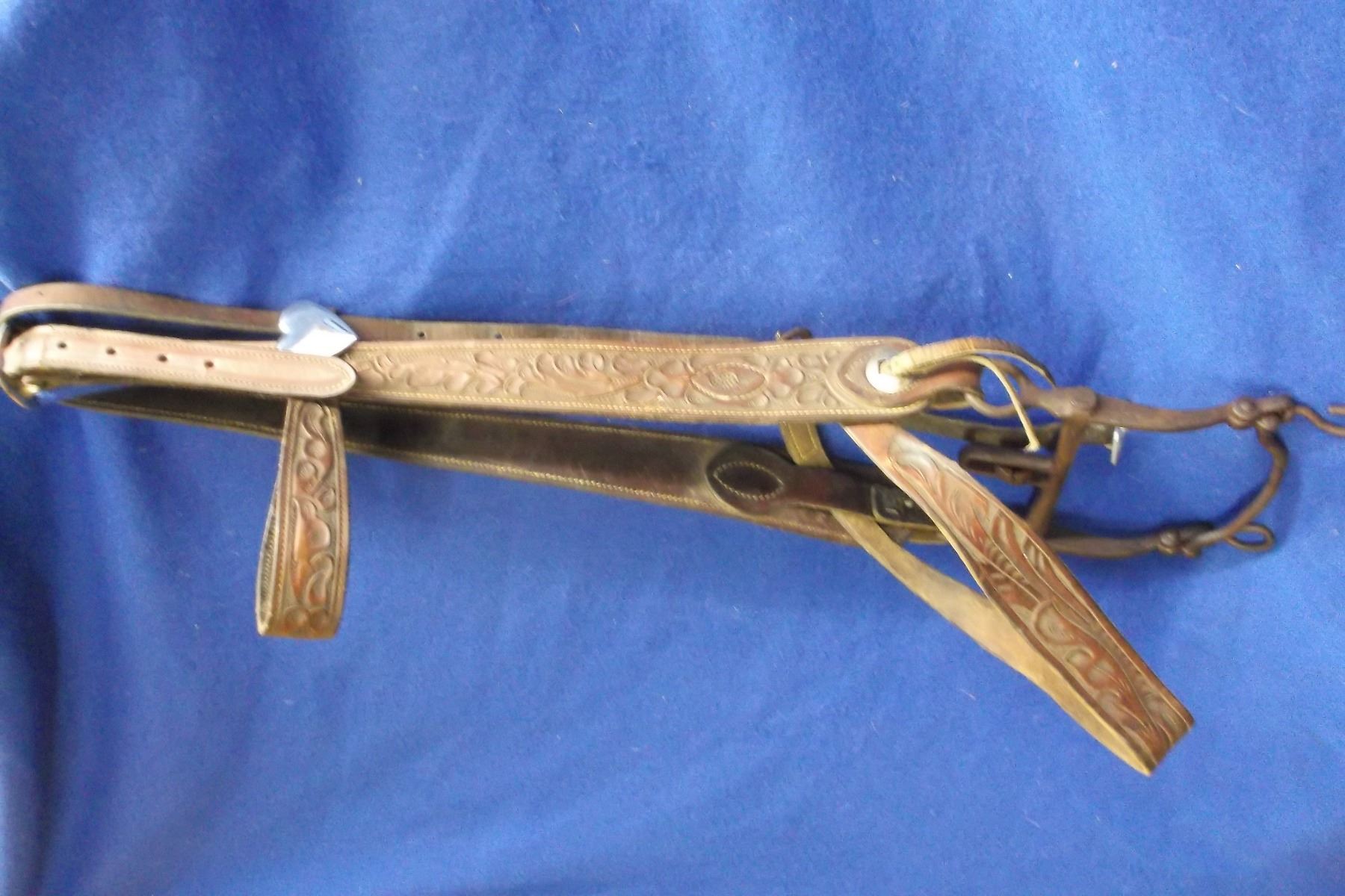 Unmarked Carved Headstall- Heart Conchos- Unmarked Beurmann Bit- California Cheek- Halfbreed Mouth- Slobber Bar