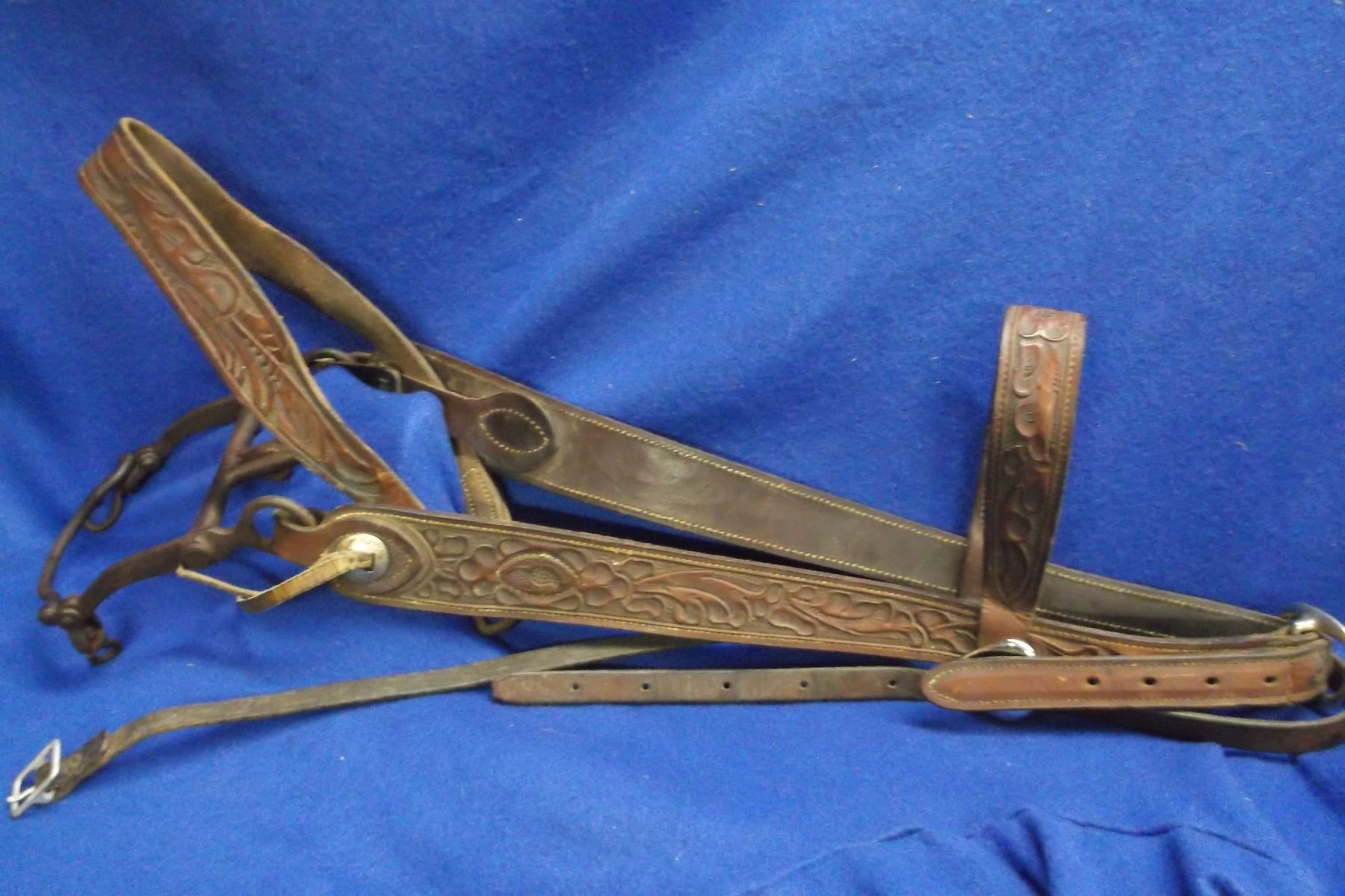 Unmarked Carved Headstall- Heart Conchos- Unmarked Beurmann Bit- California Cheek