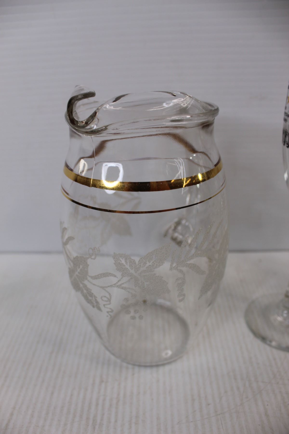 Unmarked Clear Glass Pitcher, (2) Millenium 2000 Champaigne Glasses, (12) Western Constitutional For