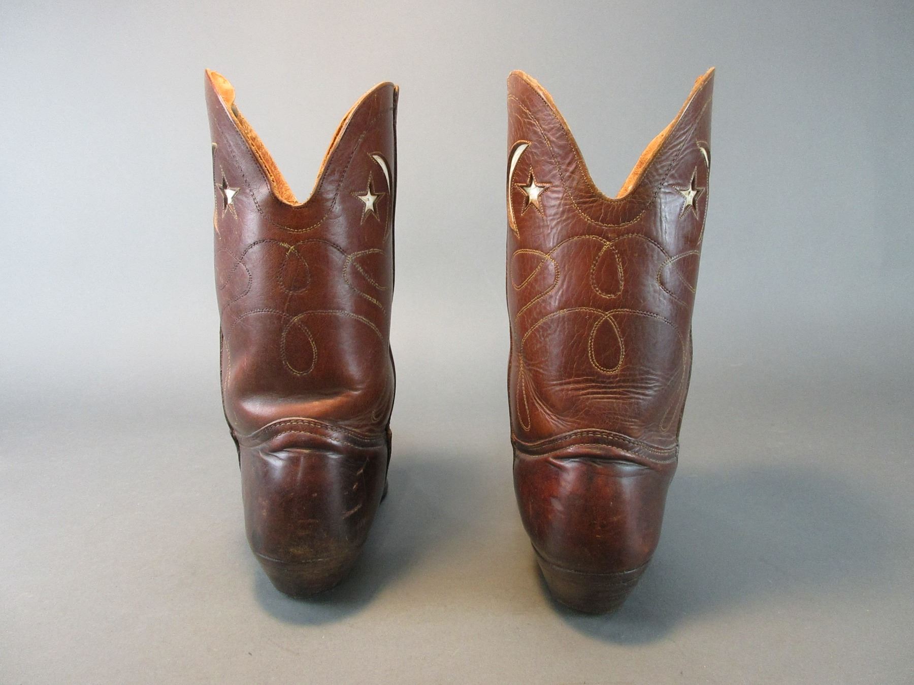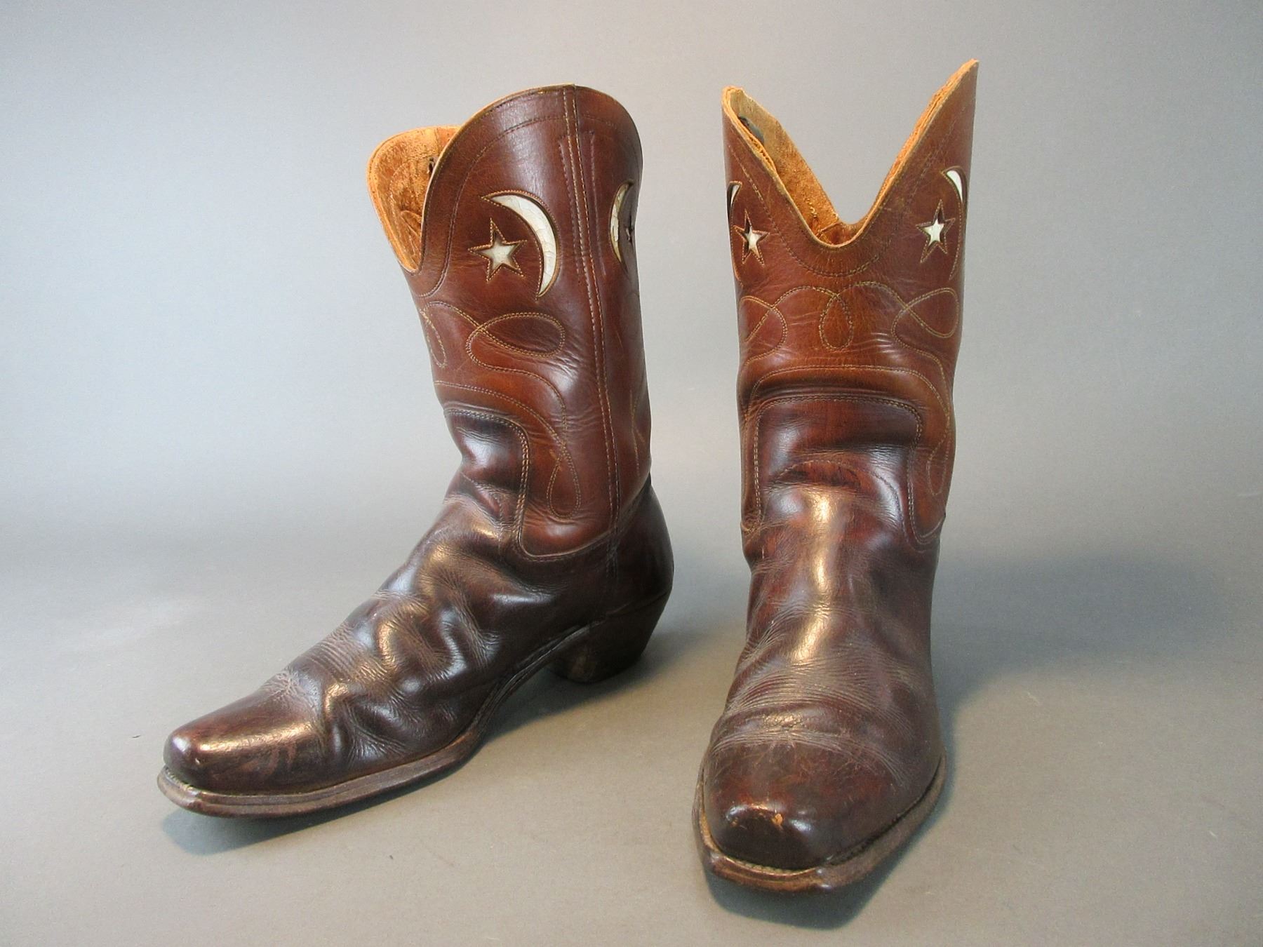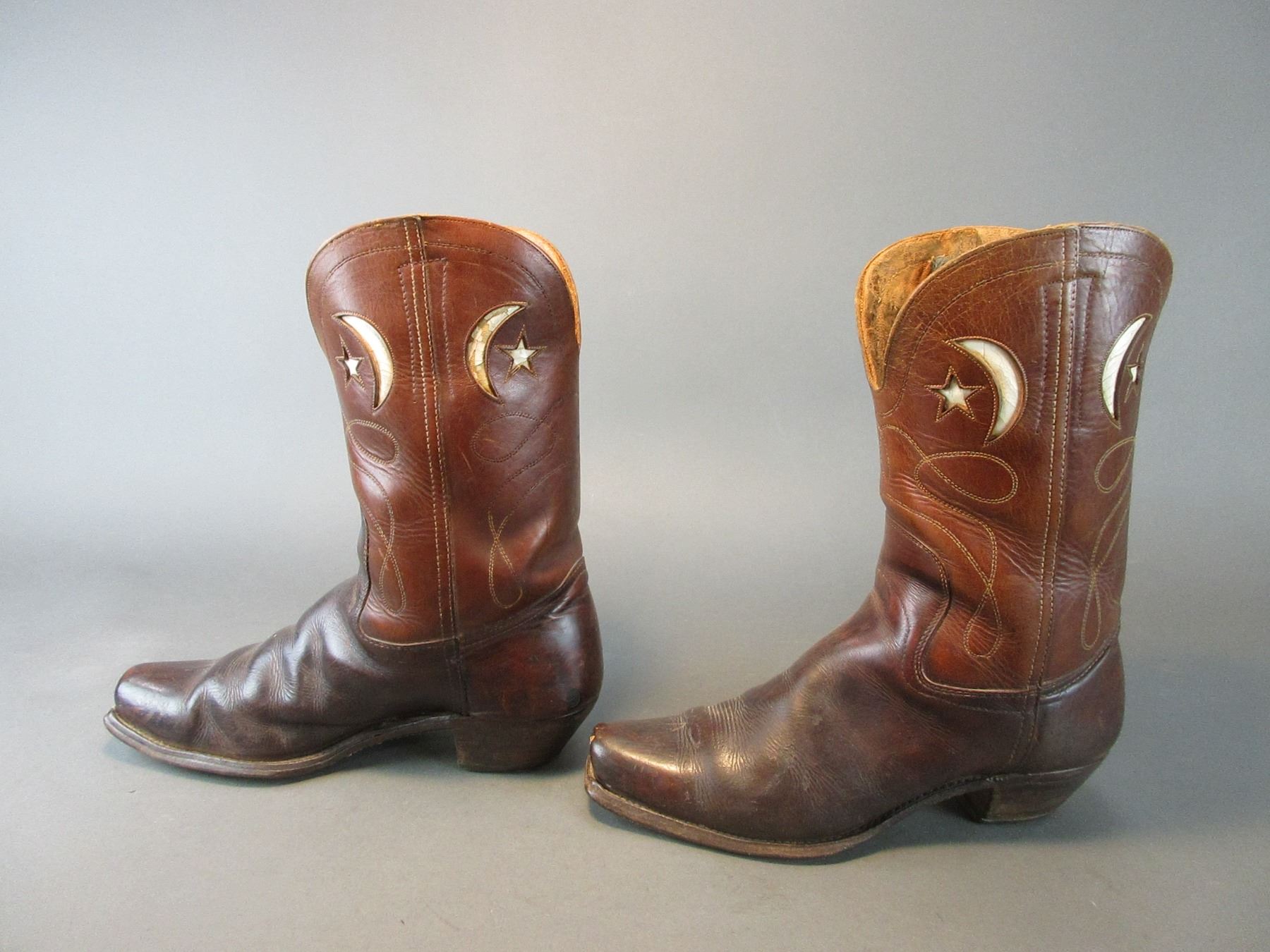 Unmarked Cowboy Boots- C 1930's- Star And Moon Inlays- 11"L