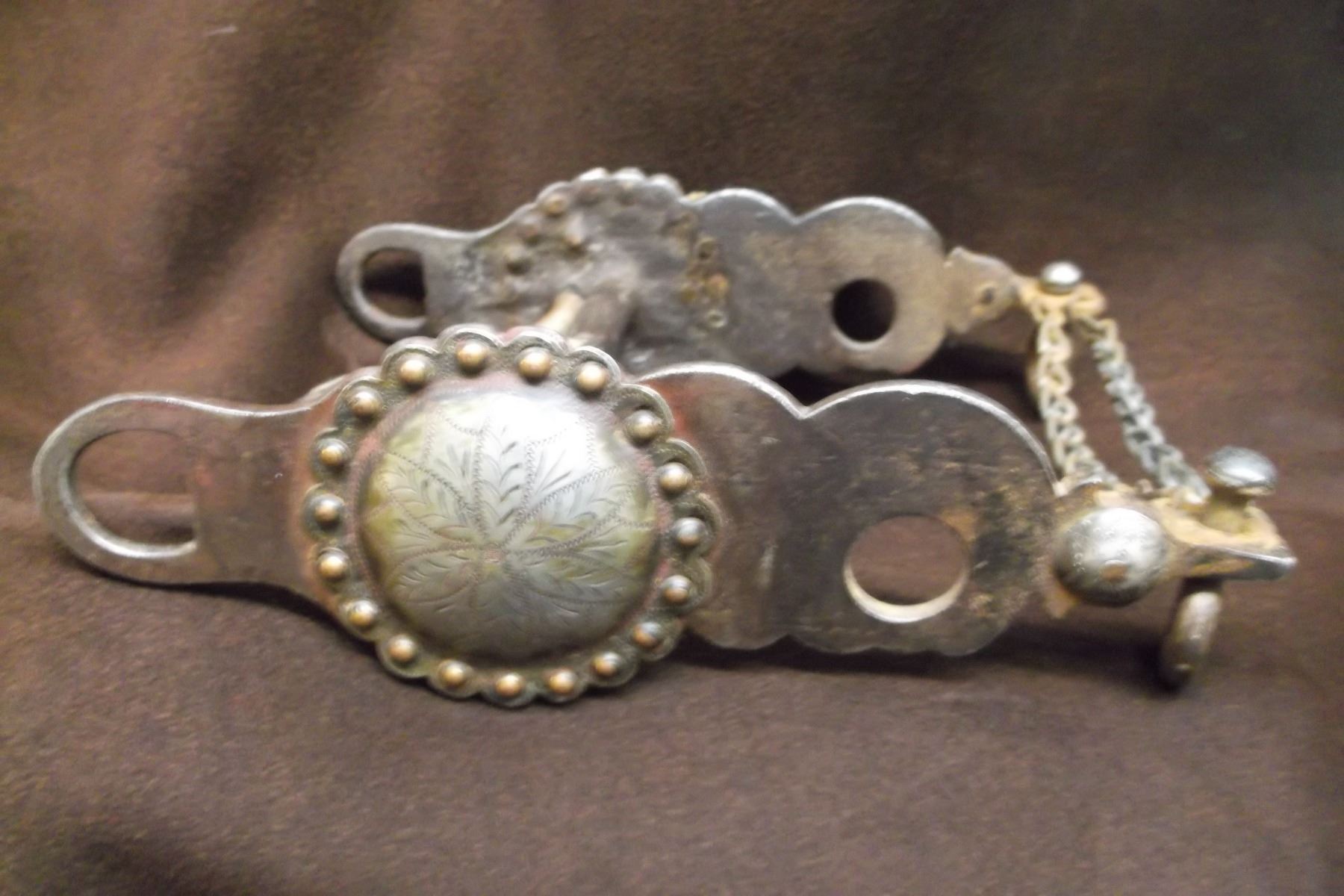 Unmarked Early Prison Made Bit- 2.5" Silver Domed Conchos- Wyoming Cheek- Spoon Mouth- Slobber Chains