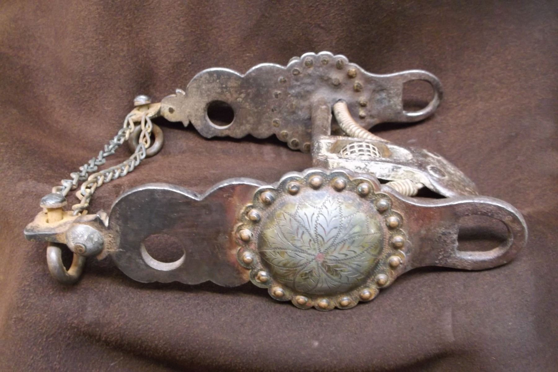Unmarked Early Prison Made Bit- 2.5" Silver Domed Conchos- Wyoming Cheek- Spoon Mouth