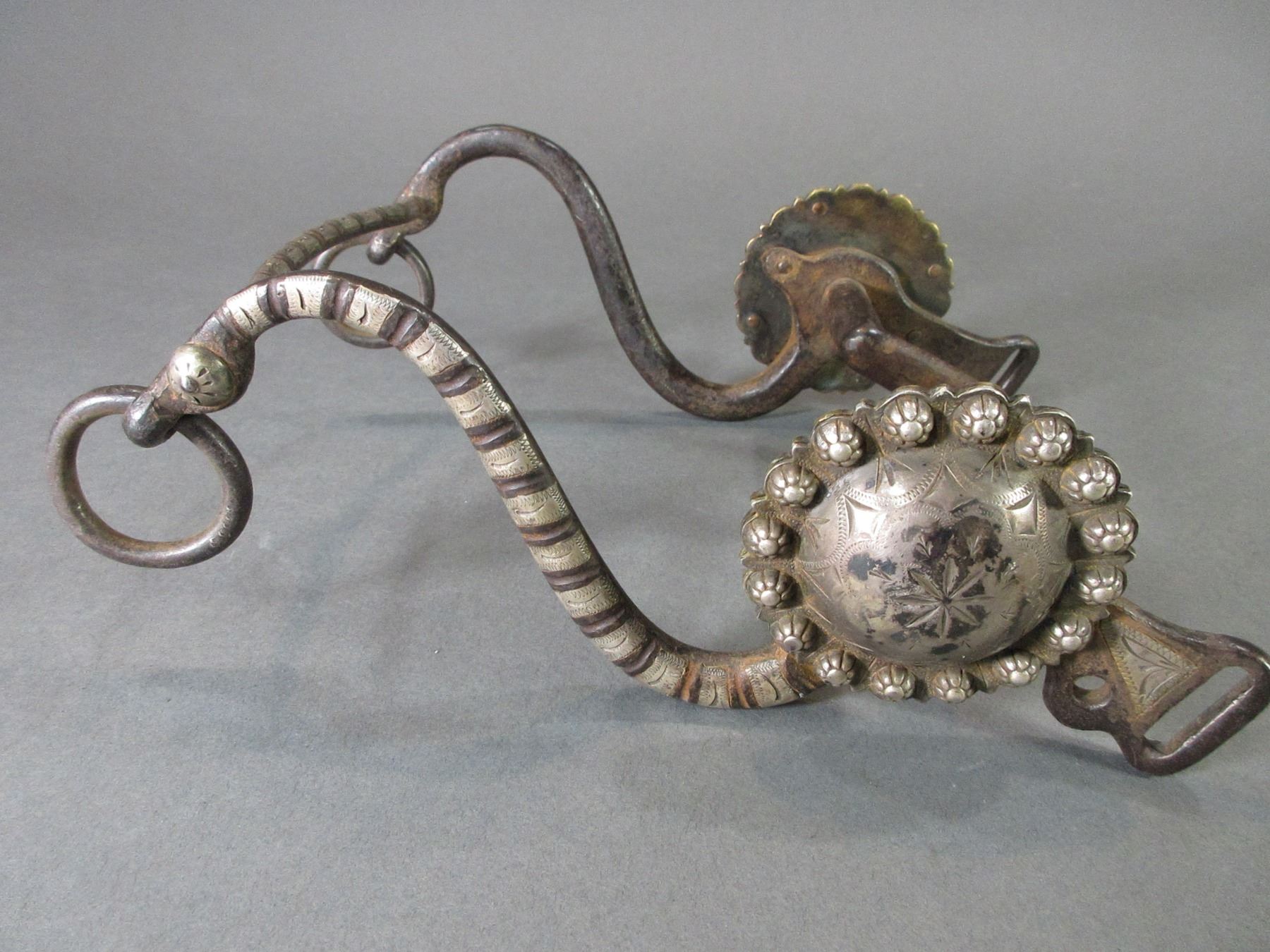 Unmarked GS Garcia Silver Inlaid Bit- Martinez Shank- High Port- Slobber Bar- Rein Chain Hangers- 2.75" Silver Conchos- Good Condition