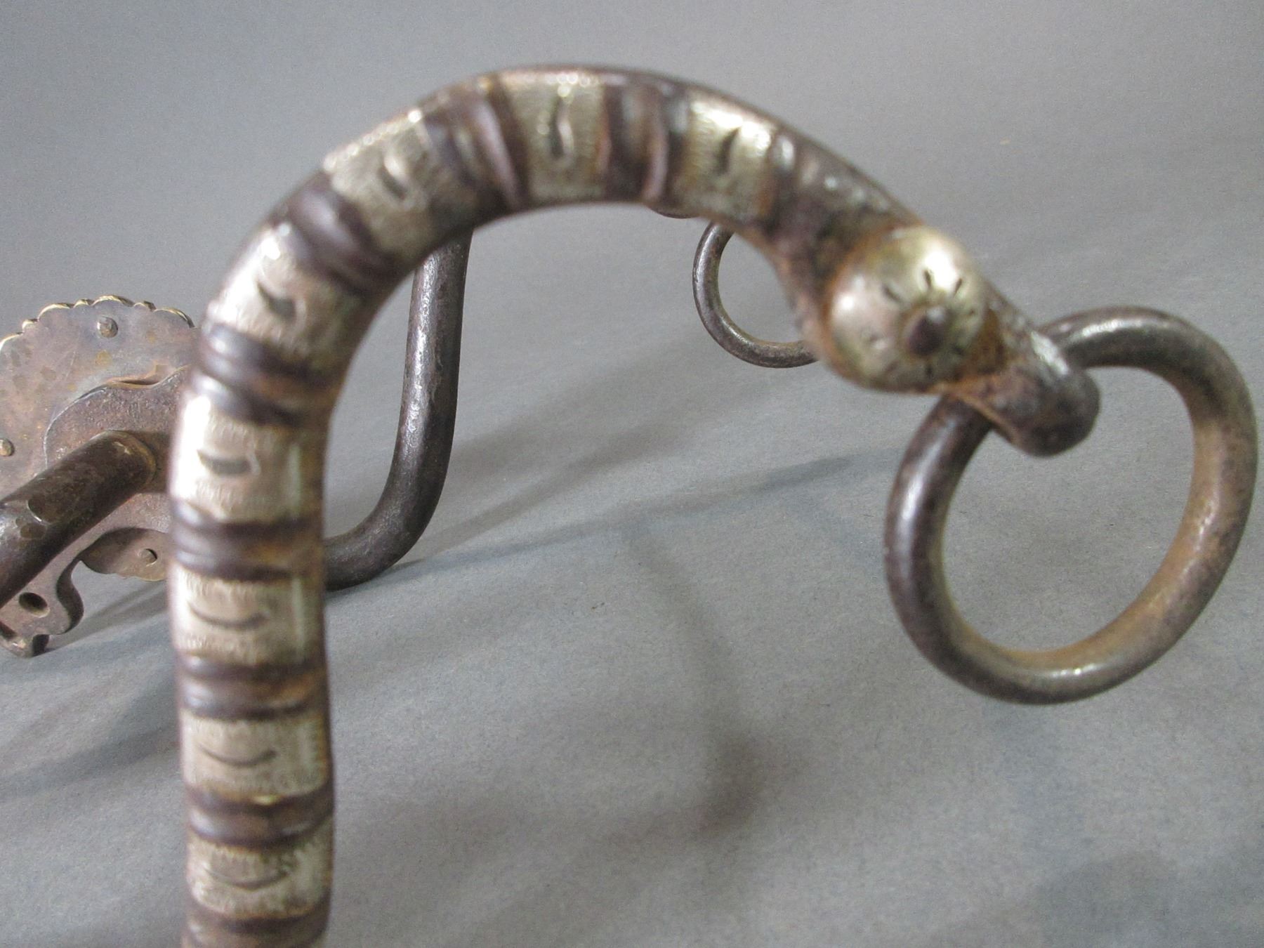 Unmarked GS Garcia Silver Inlaid Bit- Martinez Shank- High Port- Slobber Bar- Rein Chain Hangers- 2.