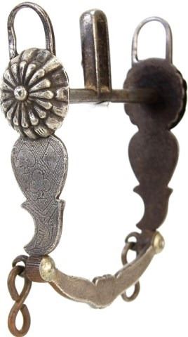 in Garcia's 1924 catalog, bit features engraved card suites spades, diamonds and clubs, overlaid slobber bar and classic jello mold conchos, cheeks 6 1/4" long.