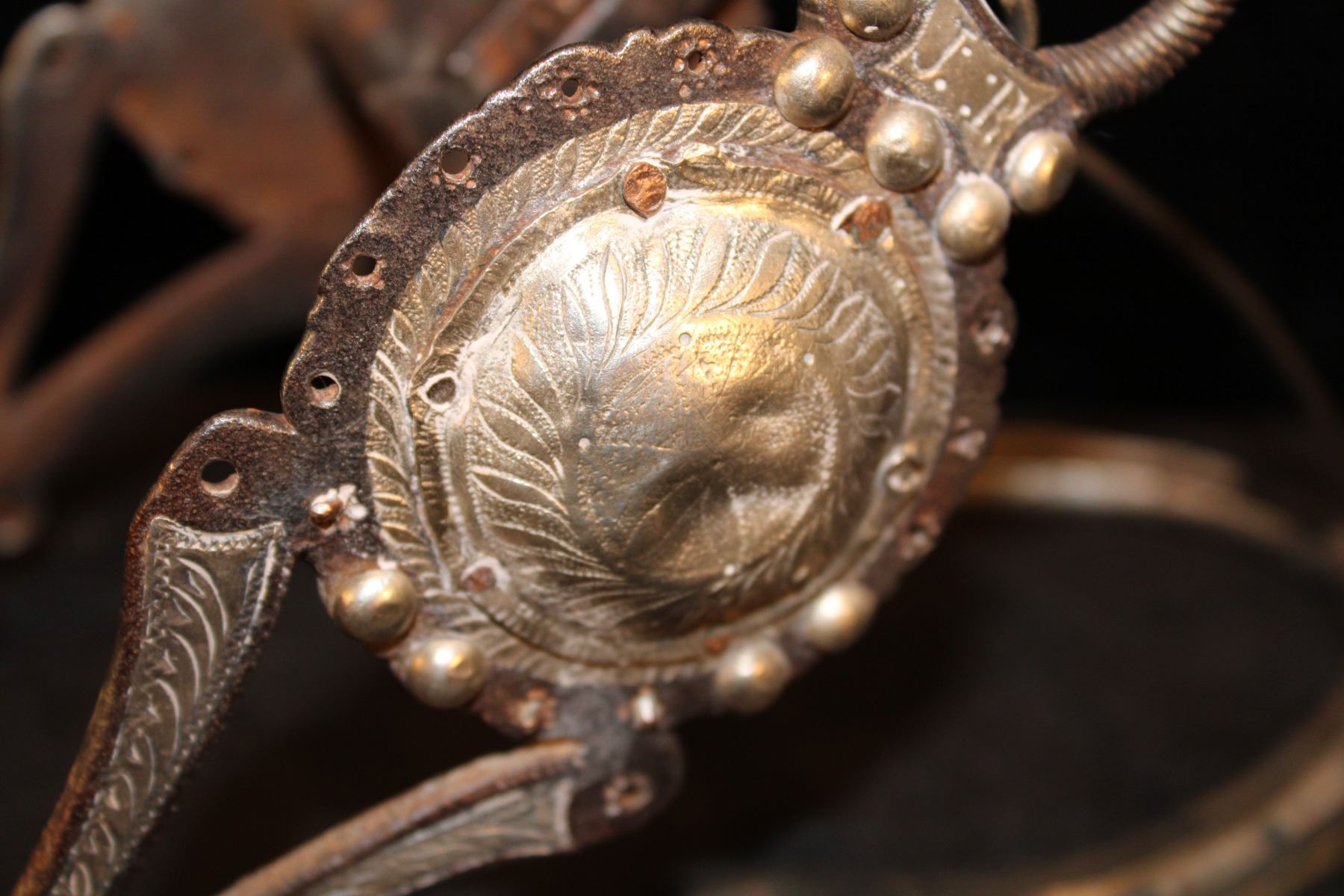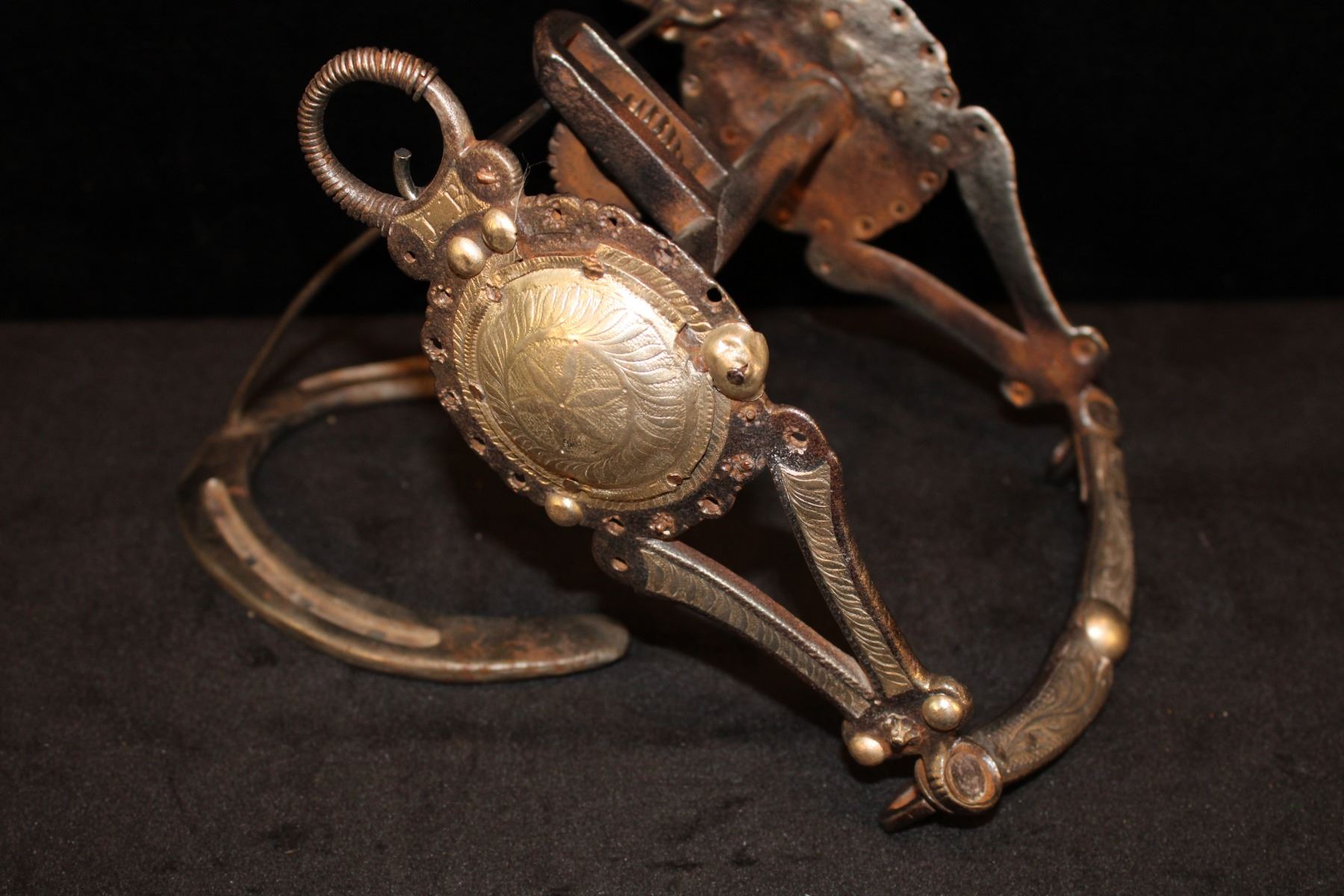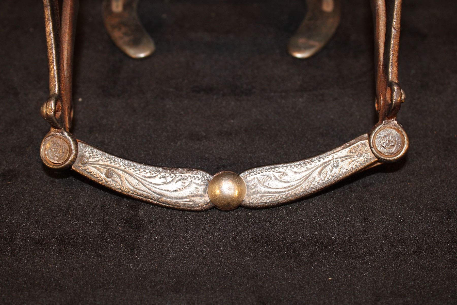 Half breed mouth, overlay silver conchos & buttons, *needs repair, users initials of J.B.