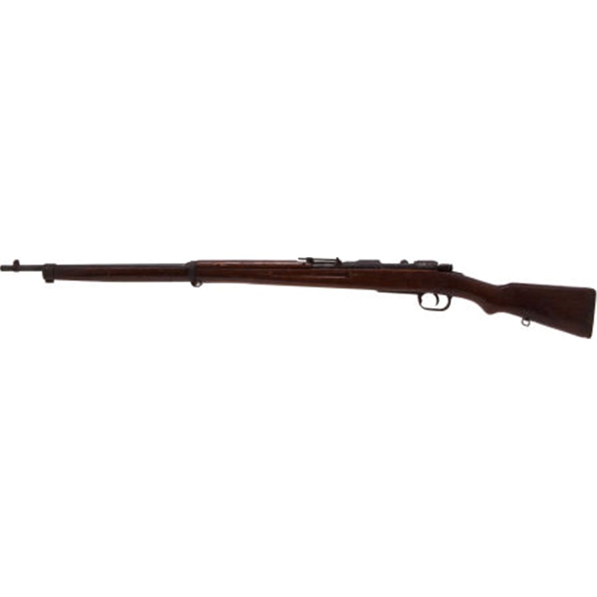 Unmarked Japanese Type 1 Bolt Action Rifle. Serial no. 14294, 6.5mm, 31-inch barrel with standard military sights. Blued military finish. No signs of mon or arsenal markings. Varnished hardwood stock with two sling swivels and two barrel bands.Condition: Fair. Metal a thin gray-brown patina with scattered heavy pitting. Wood has been revarnished. Heavy wear and dents throughout. Hand guard a poor late war fit with a small crack near rear sight. Dark bore with moderate pitting.NRA FIREARMS FOR FREEDOM PROGRAM